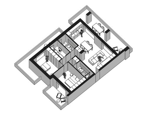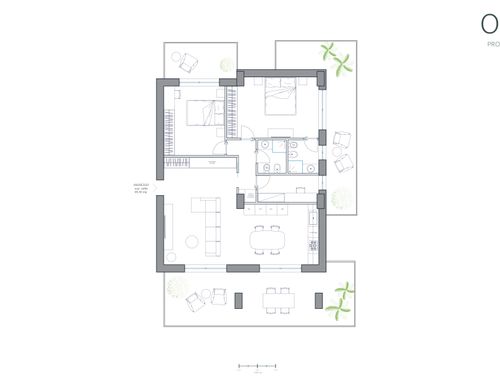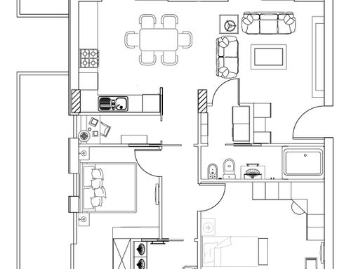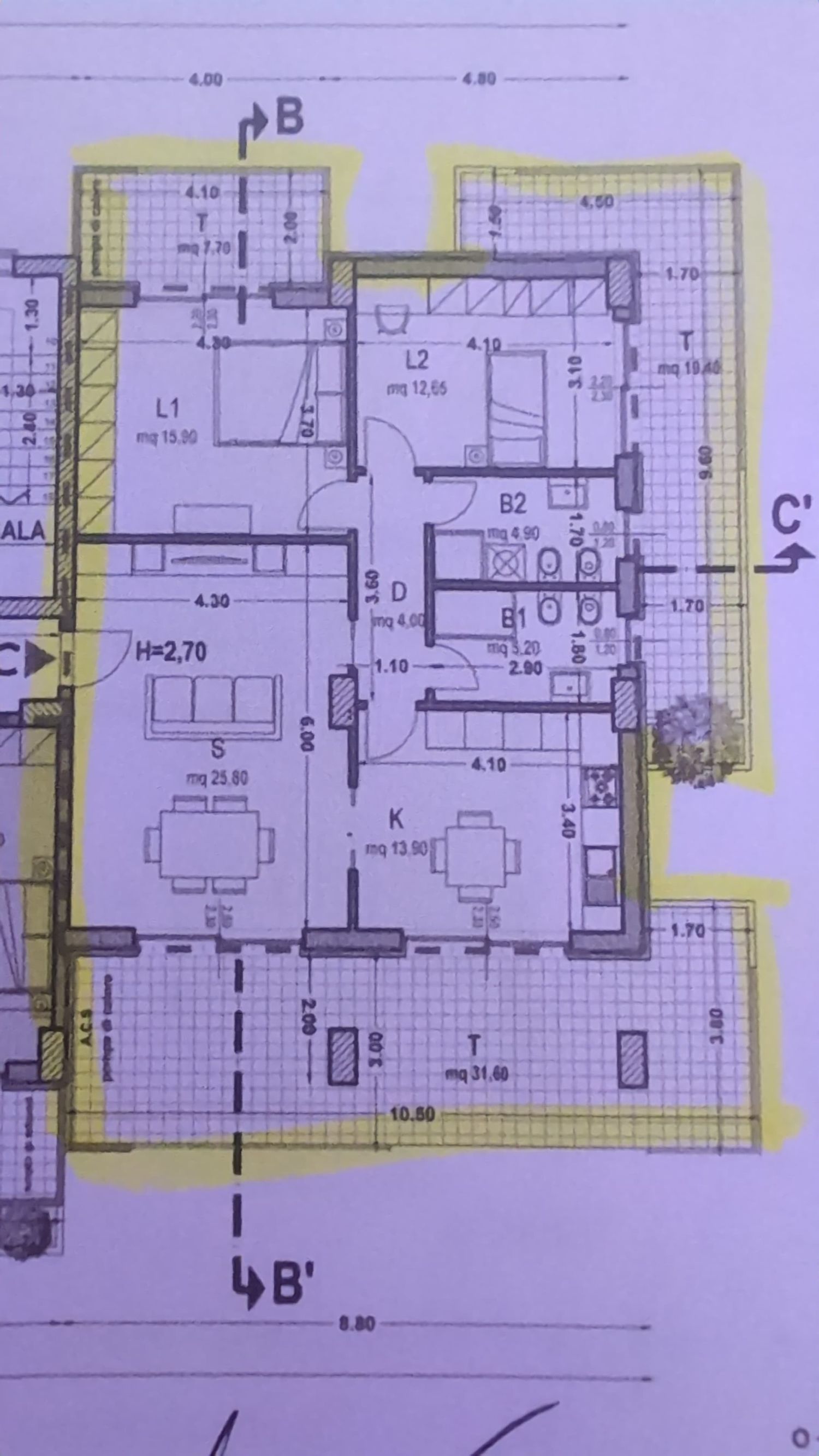 Se trata de un apartamento de 95 m², en un edificio en construcción, en el cual, respecto al plano preliminar, me gustaría realizar un espacio abierto lo más amplio posible (al menos 30–32 m²), dos dormitorios (donde el dormitorio individual esté pensado para que, con el crecimiento de mi hija, sea lo más habitable y confortable posible), un pequeño estudio y dos baños.