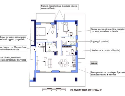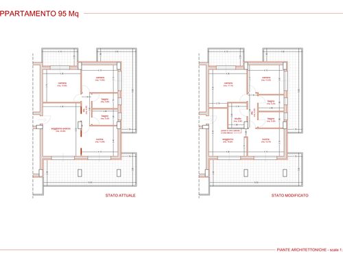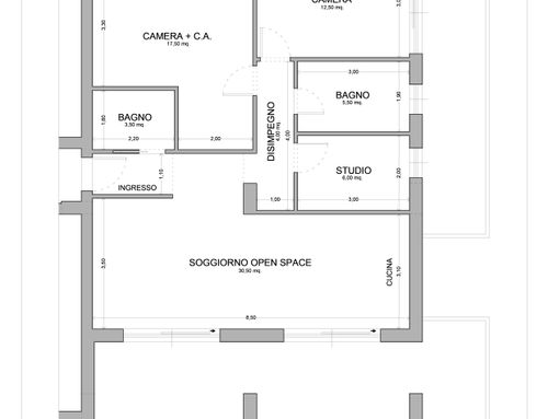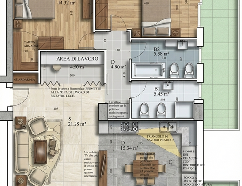 Si tratta di un appartamento di 95mq, in un edificio in costruzione, nel quale, rispetto alla planimetria previsionale, vorrei realizzare un open space più ampio possibile ( almeno 30-32 mq), due camere da letto ( dove quella singola in prospettiva della crescita di mia figlia sia più abitabile e confortevole possibile), uno studietto e due bagni