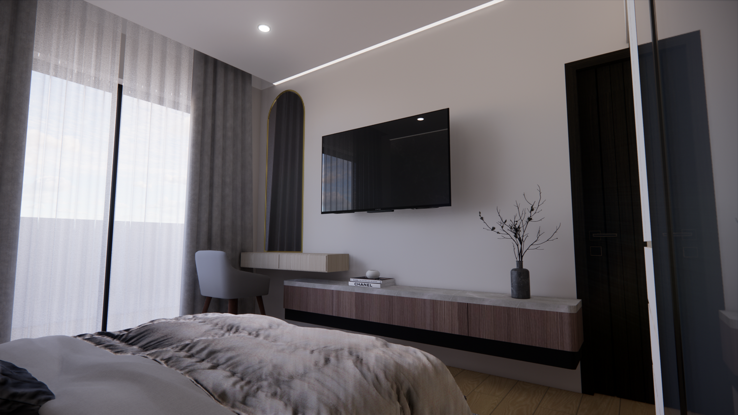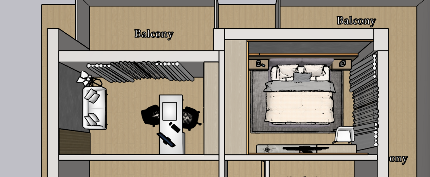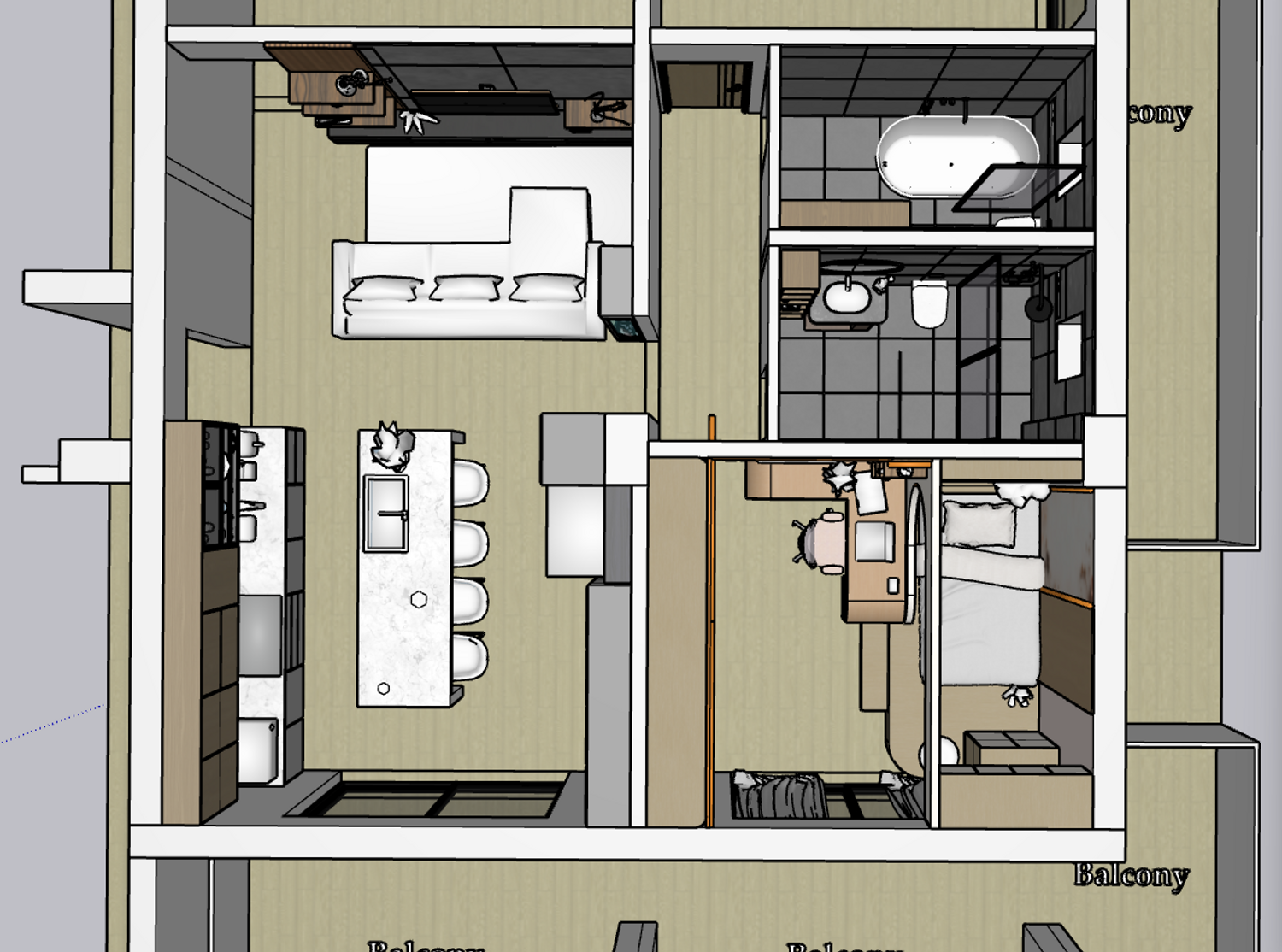 Hello client, we have designed the apartment according to the required spaces. Actually, we need to upload the file we worked on in SketchUp format; however, we are facing limitations because this file type cannot be uploaded. We hope you like our design. Thank you.