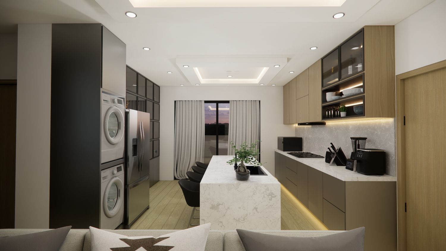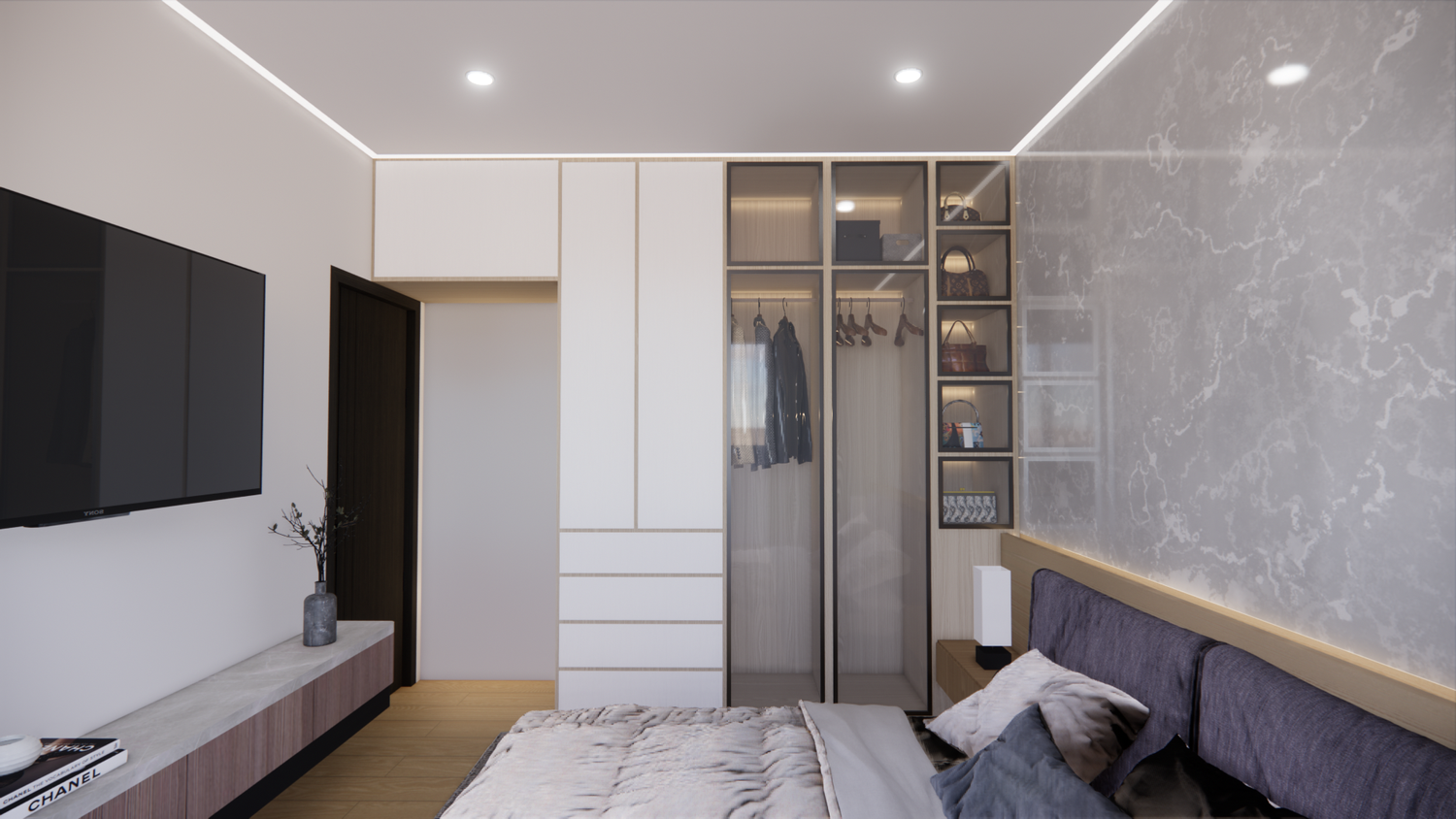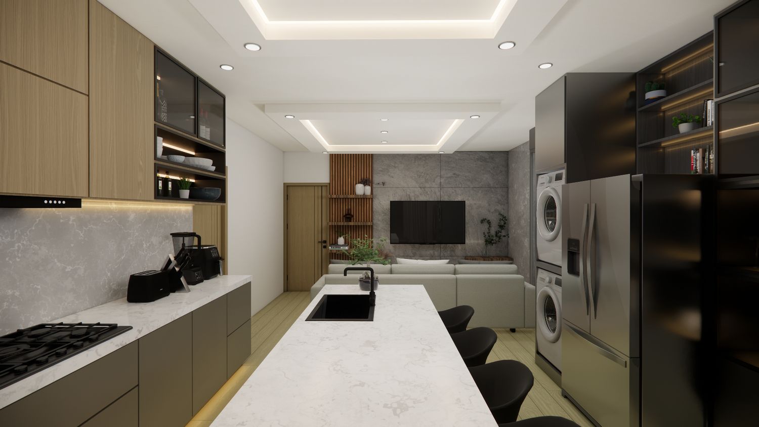 Hello client, we have designed the apartment according to the required spaces. Actually, we need to upload the file we worked on in SketchUp format; however, we are facing limitations because this file type cannot be uploaded. We hope you like our design. Thank you.