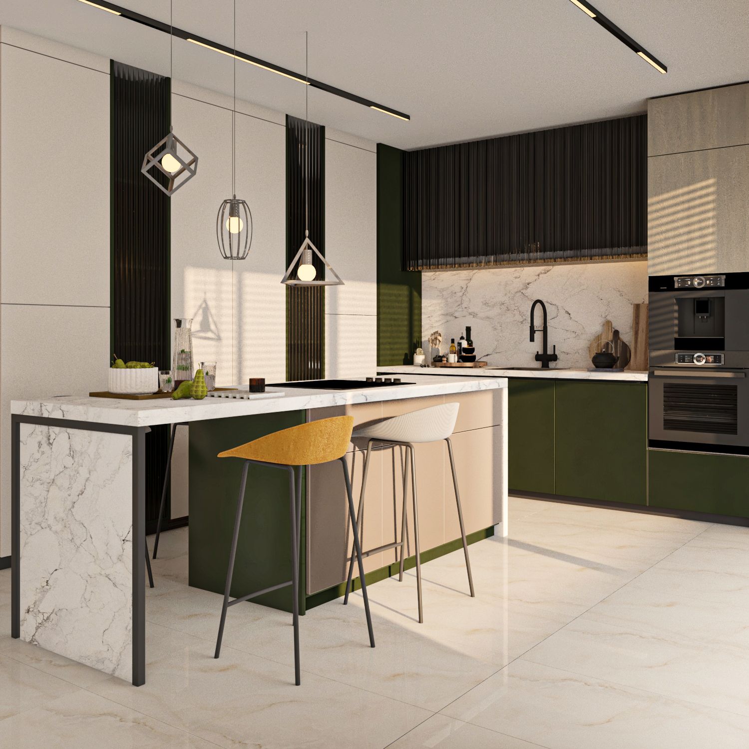 In terms of style, we adopted a contemporary design enriched with warm and elegant touches. The palette features soft, welcoming tones with a distinctive accent of green, bringing freshness and vitality to the space.
