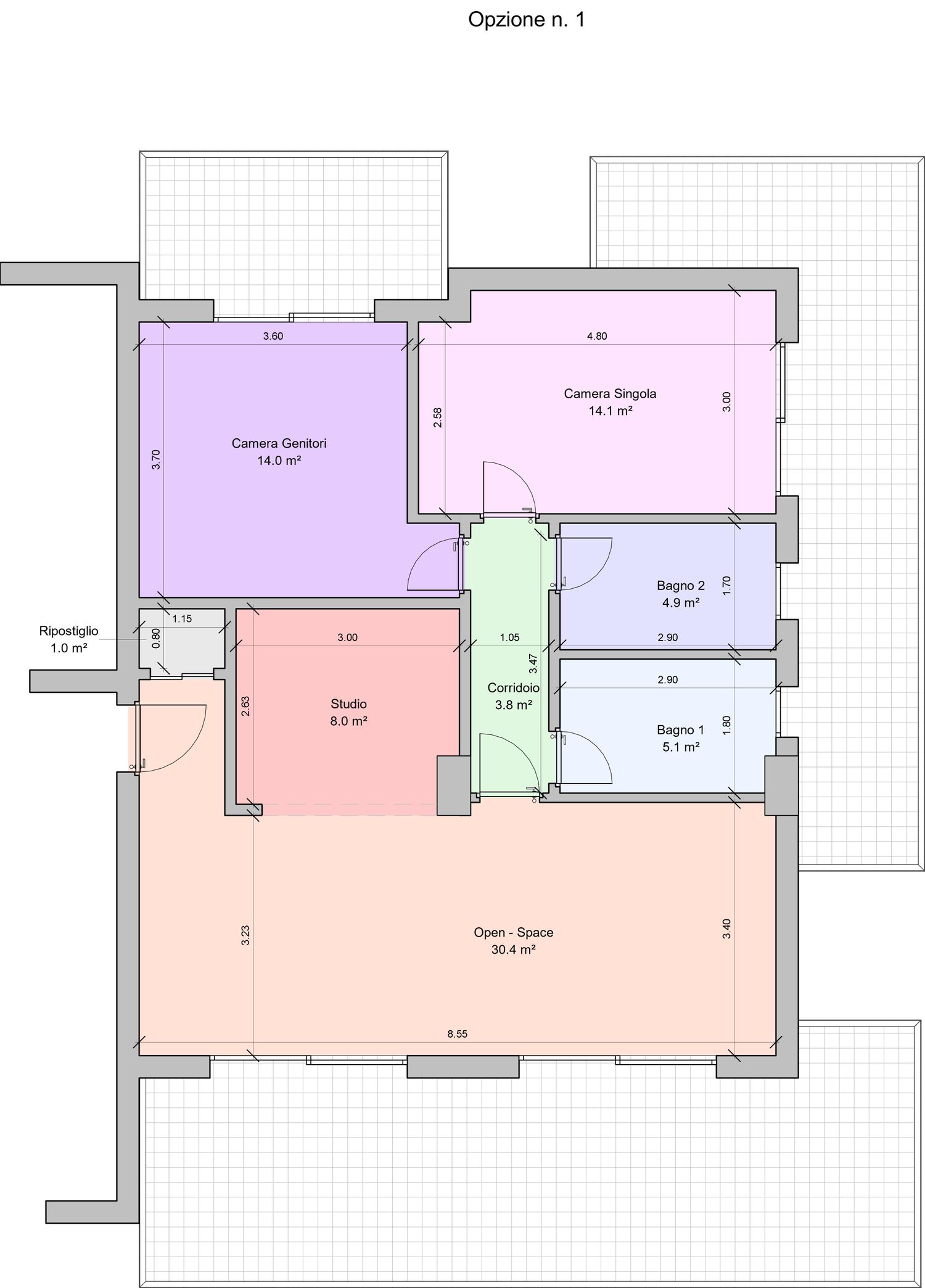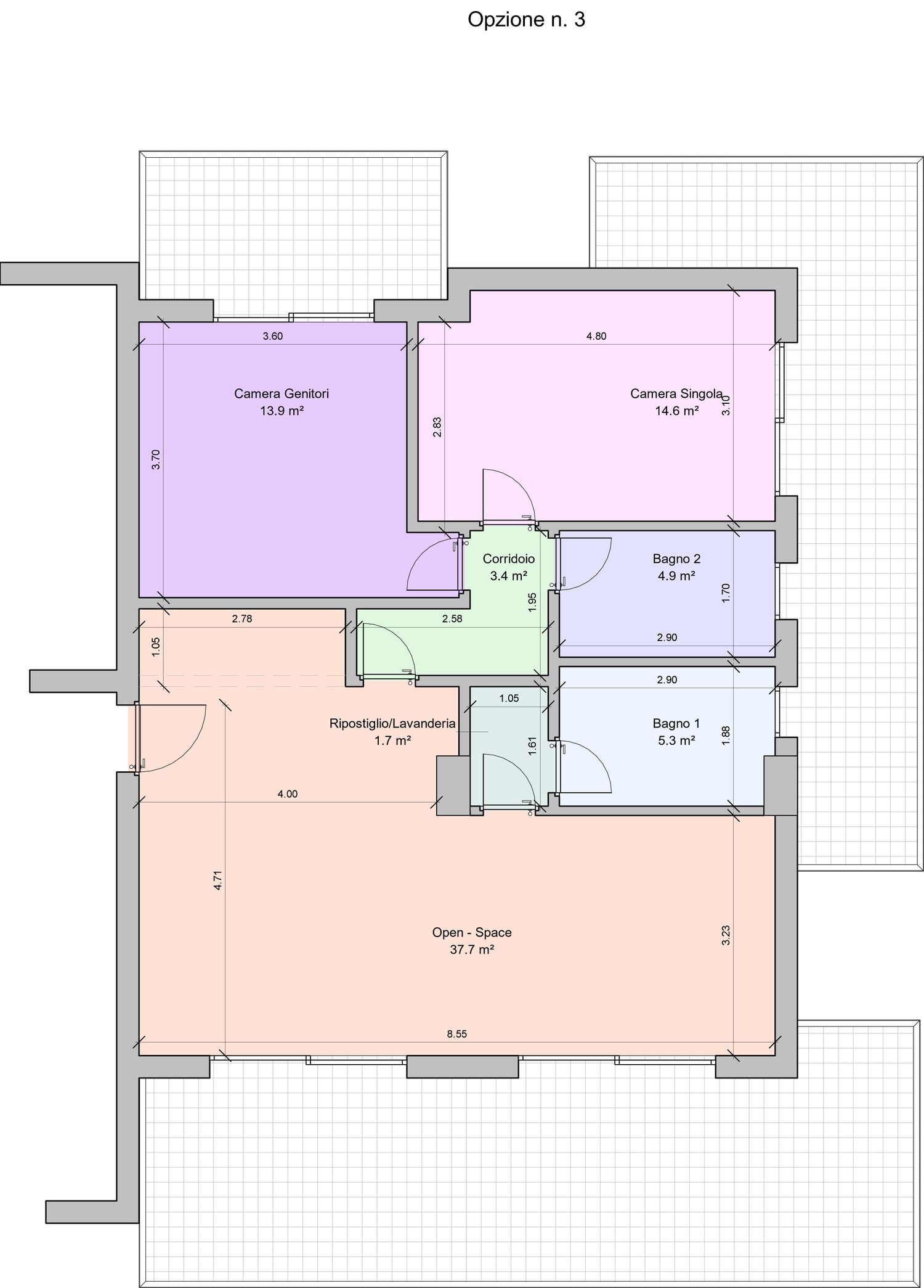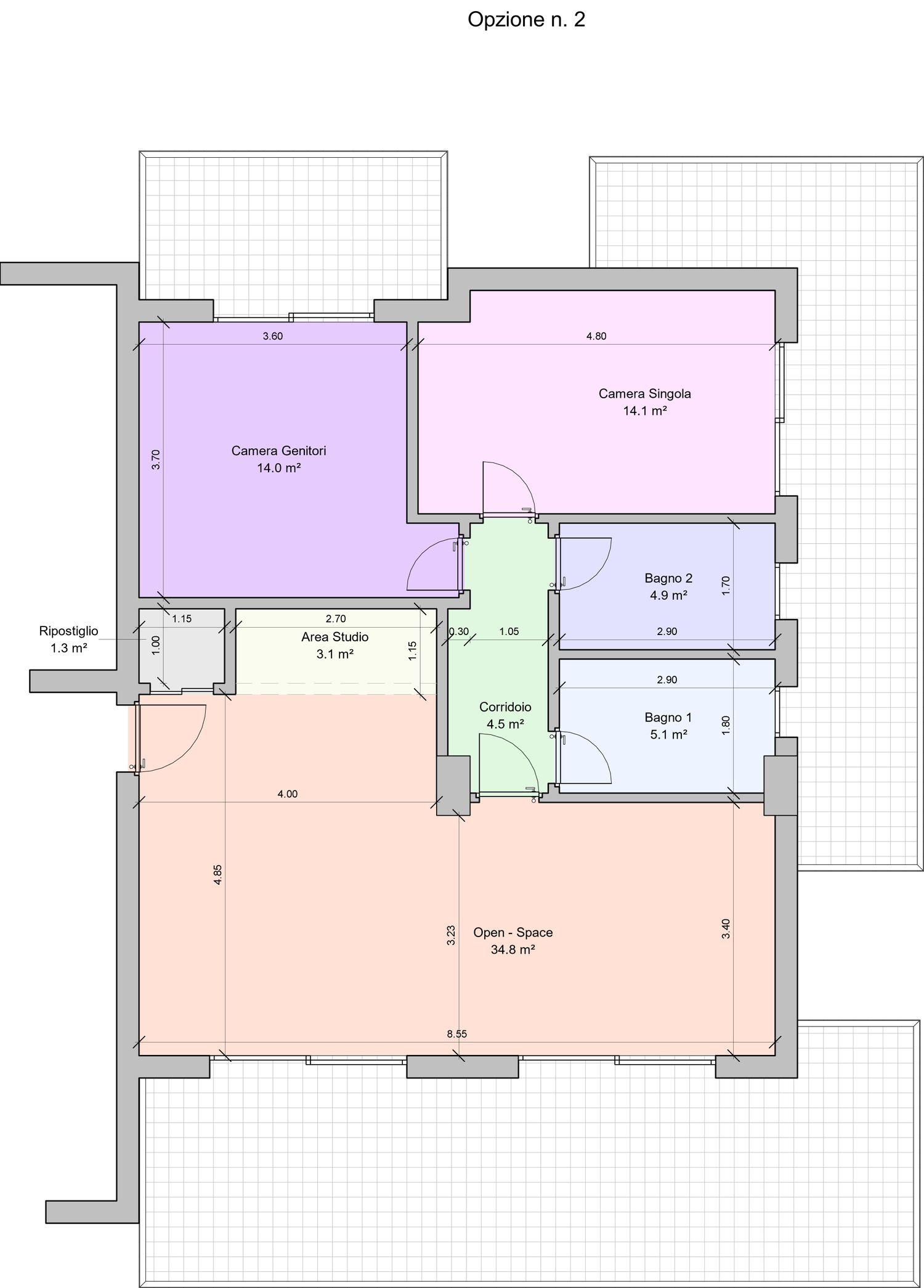 L'allargamento della camera singola, ottenuto riducendo la camera matrimoniale. La singola raggiunge così una metratura che consente la futura conversione in camera doppia/matrimoniale.