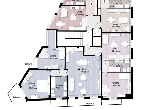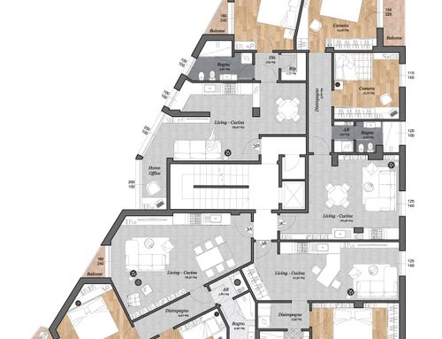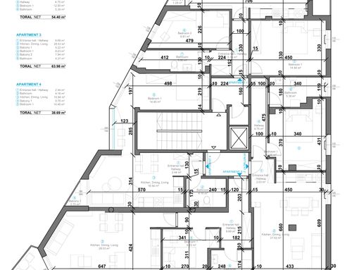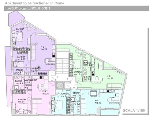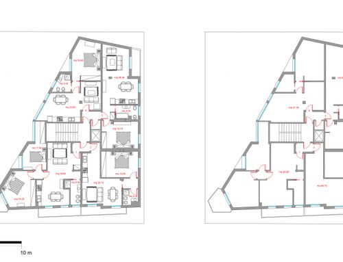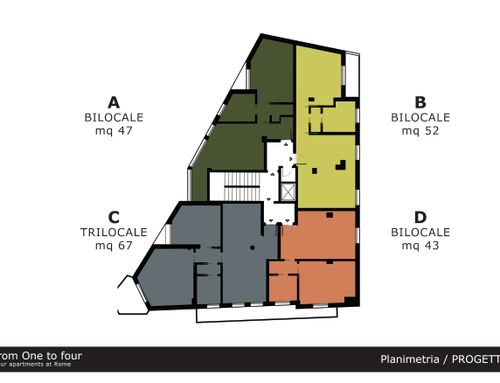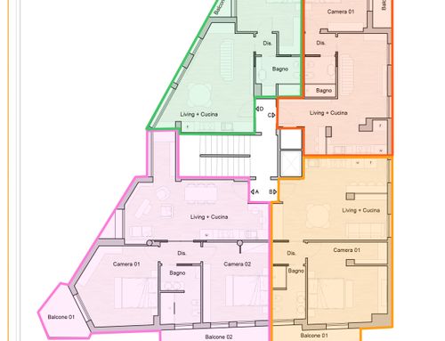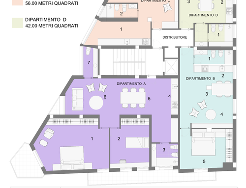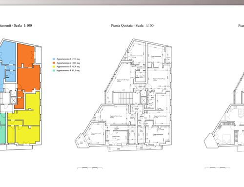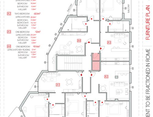 This project will realize four new living units through the fractioning and renovation technique. We have to create 4 different solution: 1 three-room apartment and 3 two-room apartment of 250 gross square meter.