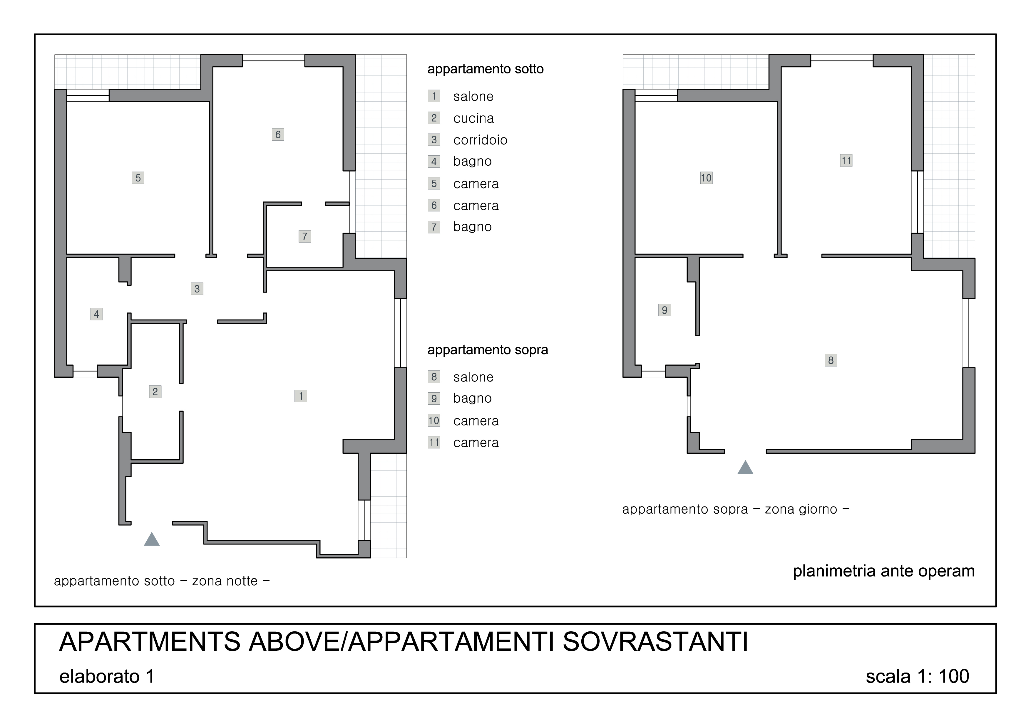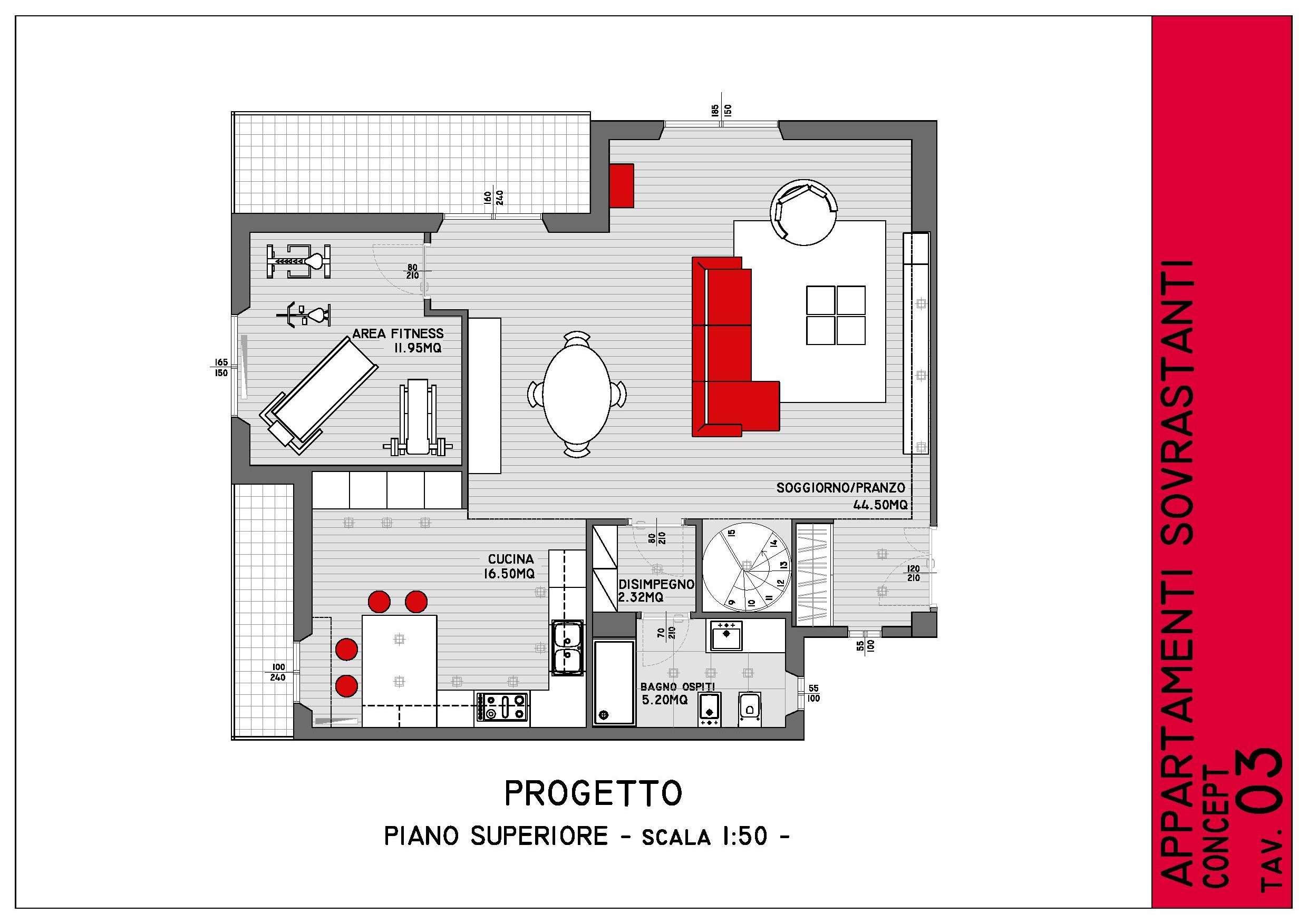 I have two apartments above. One below, where I currently live, was renovated three years ago. Now I bought the apartment above mine that is slightly smaller and say that is what needs the restructuring itself. I would like to use as a sleeping area and under what make living in the one above. Of course the two apartments will be connected by an internal staircase. I had thought of a spiral staircase but I accept any kind of advice and counsel. In the apartment below, that from now on I will call the sleeping area, there are two bedrooms, one with en suite bathroom. Then there is a small hallway, another bathroom, a living room and a kitchen. We should break down the kitchen, get another bedroom, with walk-in closet (if there is space), and a laundry room to put a wash and washing machine. This laundry should look out to the balcony so it can be simplified by stringing and withdrawal cloths. It should also go down the stairs from the upper floor (living area). The living area is currently composed of two bedrooms, a bathroom and a lounge. I would leave the room from the smaller balcony on the only to make us a kind of fitness room with treadmills, bench equipped, stepper, etc. In the other room I would make the kitchen look down on the area from which it will be separated by a low wall with a shelf. In the room will be the living room with a dining table that tv. I would also controsoffittare throughout the living area ( except the fitness room and the bathroom ) to have a play of lights and spotlights in the kitchen and living room. Instead where there is the main dining table there will be the lampadario. Then there is the bathroom remodeling living space and of course the ladder. This is my basic idea. As regards the mobile prefer modern-style furniture, with more wood and little steel. The first 12 photos refer to the apartment less already renovated and the second top 12 apartment renovation. The next photos to the type of finishes and furnishings that I would The upper apartment should have the style of the bottom one as the furniture in the living area of the top will be those who are currently in the apartment below.