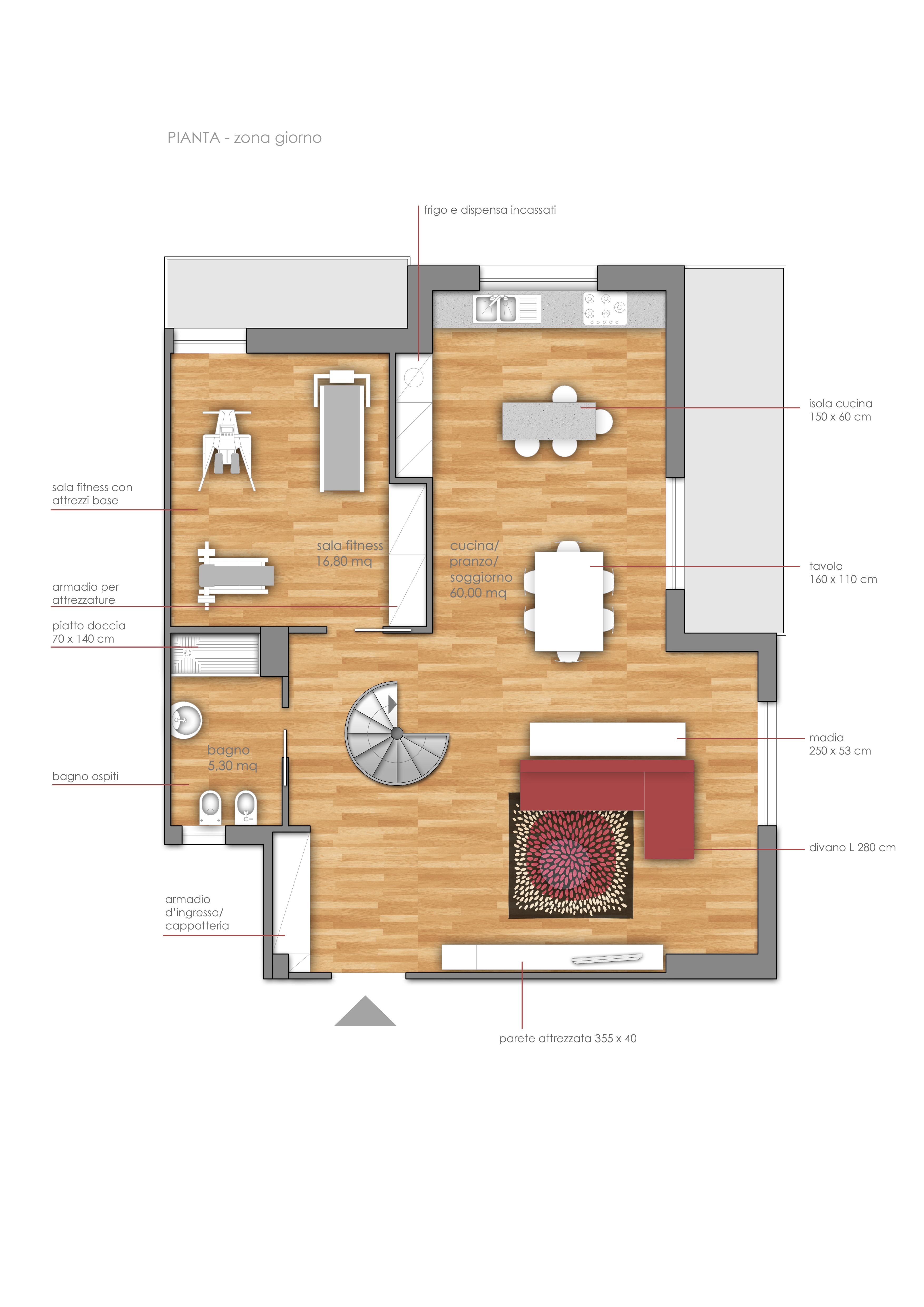 Ho due appartamenti sovrastanti. Quello sotto, dove attualmente abito, è stato ristrutturato 3 anni fa. Adesso ho acquistato l'appartamento sopra il mio che è leggermente più piccolo e diciamo che è quello che necessita della ristrutturazione vera e propria. Vorrei adibire a zona notte quello sotto e fare la zona giorno in quello sopra. Naturalmente i due appartamenti dovranno essere collegati da una scala interna. Io avevo pensato ad una scala elicoidale ma accetto qualsiasi tipo di suggerimento e consiglio. Nell'appartamento di sotto, che da questo momento chiamerò zona notte, ci sono due camere da letto, una con il bagno interno. Poi c'è un piccolo corridoio, un altro bagno, un salone e una cucina. Dovremmo abbattere la cucina, ricavare un'altra camera da letto, con cabina armadio (se c'è spazio), e una stanza lavanderia dove mettere un lavatoio e la lavatrice. Questa lavanderia dovrebbe affacciarsi al balcone così da poter essere facilitate le operazioni di stendimento e ritiro panni. Inoltre dovrebbe scendere la scala dal piano superiore (zona giorno). La zona giorno è attualmente composta da due camere, un bagno e un salone. Vorrei lasciare la camera che da sul balcone più piccolo per farci una sorta di sala fitness con tapis roulant, panca attrezzata, stepper, ecc. Nell'altra stanza vorrei fare la cucina che affaccerà sul salone dal quale sarà separata da un muretto basso con ripiano. Nella sala andrà sia il salotto con tv che un tavolo pranzo. Inoltre vorrei creare, tramite cartongesso o altro, una sorta di guardaroba vicino alla porta di ingresso. Vorrei anche controsoffittare tutta la zona giorno (ad eccezione della sala fitness e del bagno) per avere un gioco di luci e faretti in cucina e salotto. Invece dove c'è il tavolo da pranzo principale ci sarà il lampadario. Poi c'è la ristrutturazione del bagno zona giorno e naturalmente lo spazio per la scala. Questa è la mia idea di base. Per quanto riguarda i mobili preferiamo mobili in stile moderno, con più legno e poco acciaio. Le prime 12 foto si riferiscono all'appartamento inferiore già ristrutturato e le seconde 12 all'appartamento superiore da ristrutturare. Le foto successive al tipo di finiture e arredamento che vorrei. L'appartamento superiore dovrebbe avere lo stile di quello inferiore in quanto i mobili della zona giorno dell'appartamento superiore saranno quelli che si trovano attualmente nell'appartamento inferiore.