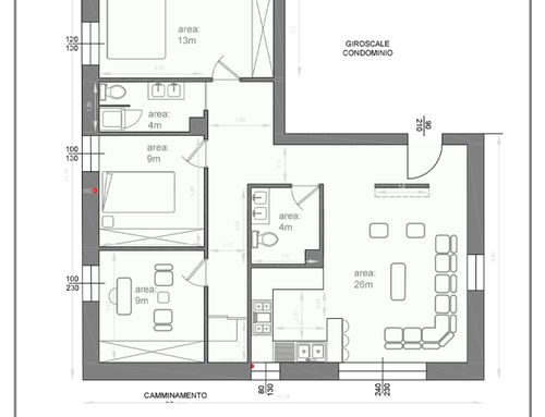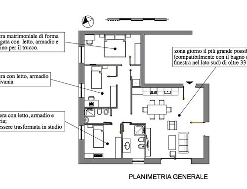 - una zona giorno (soggiorno-cucina) più grande possibile, comunque minimo 30 mq