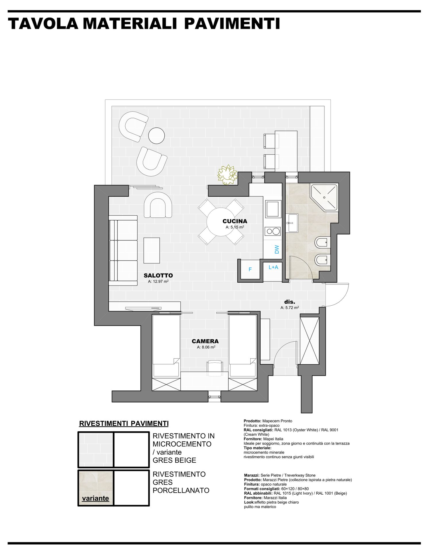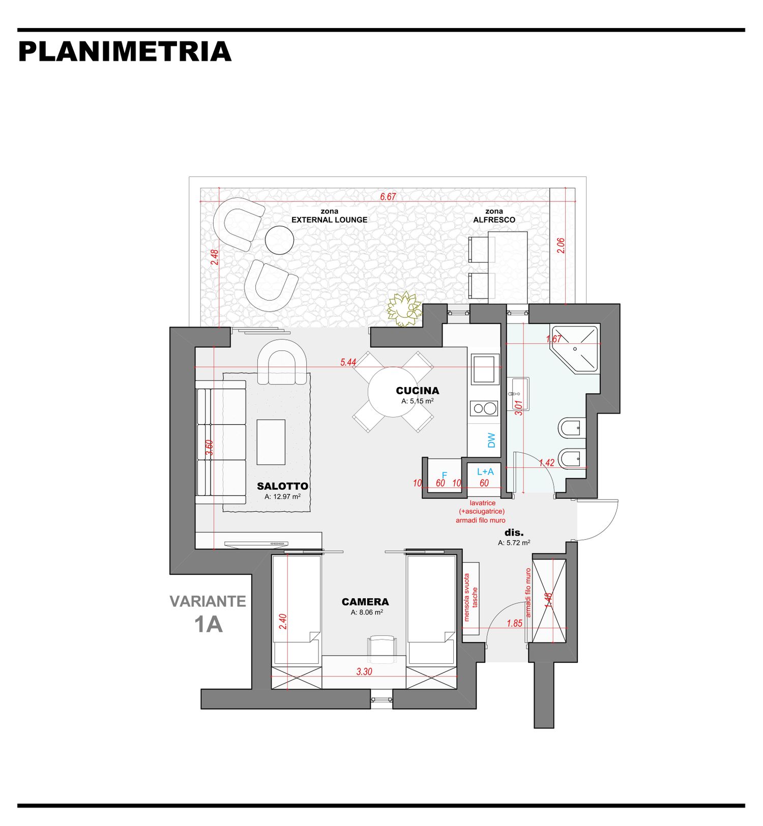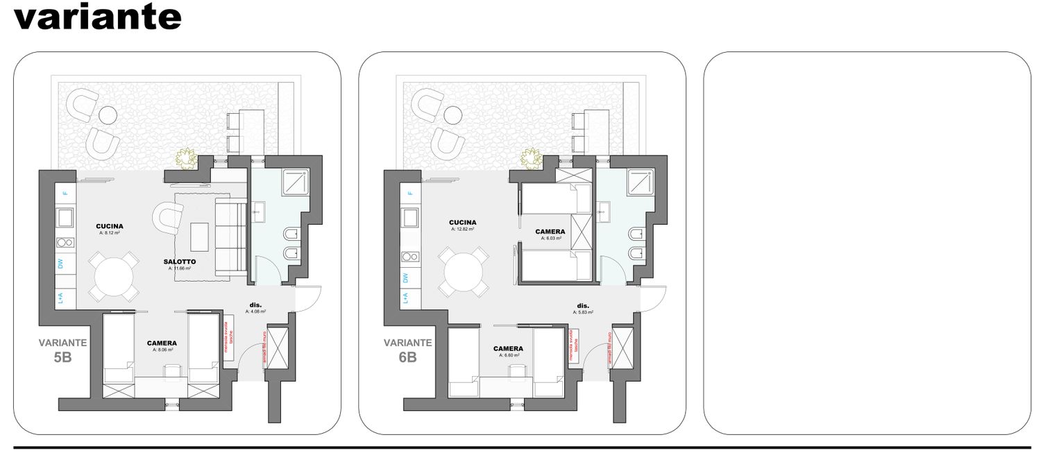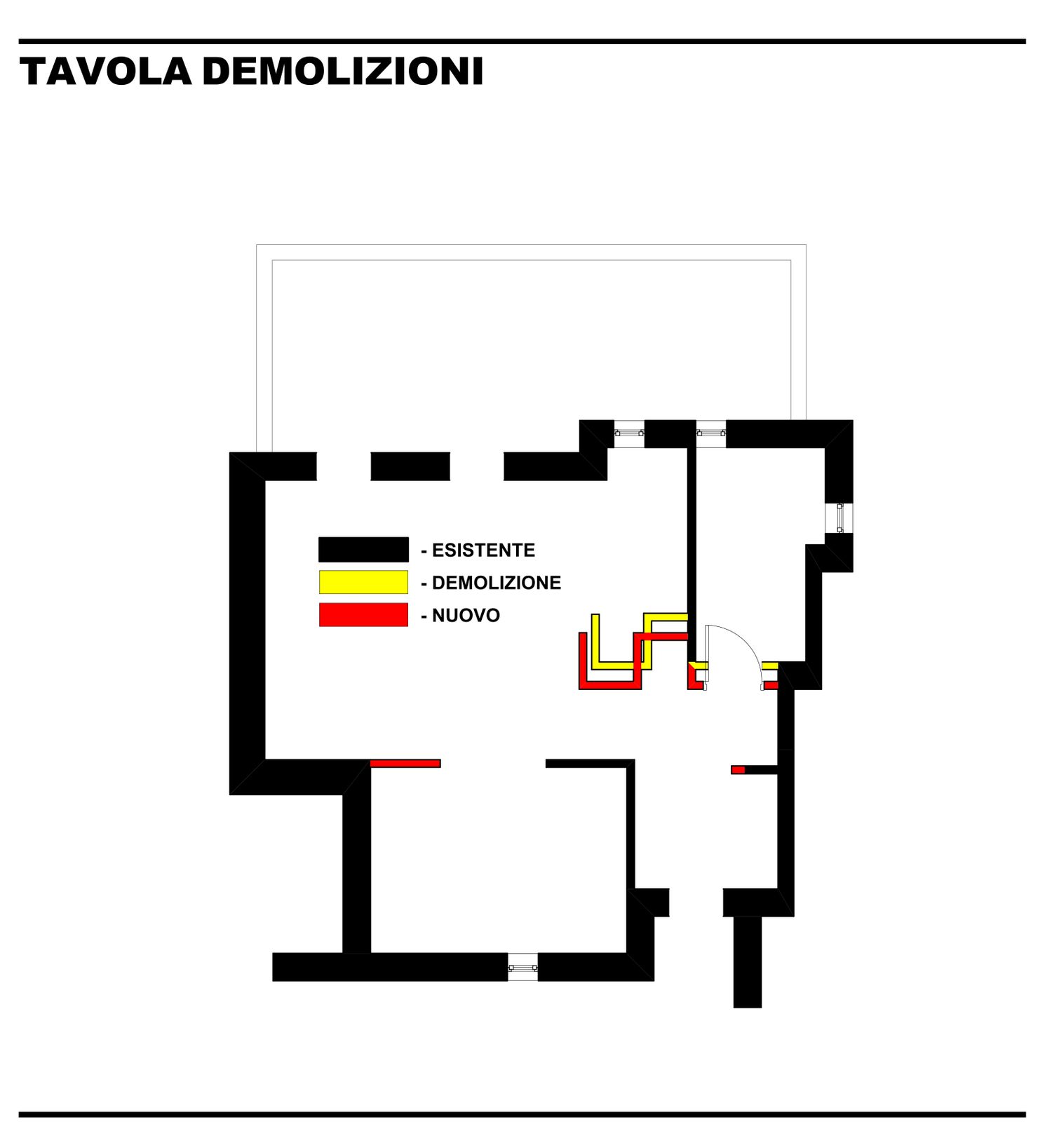Per la definitivazione della soluzione progettuale è necessario disporre di un rilievo architettonico (R.L.V.) aggiornato e preciso, con dimensioni corrette e verificabili, al fine di confermare layout, superfici e rapporti spaziali.