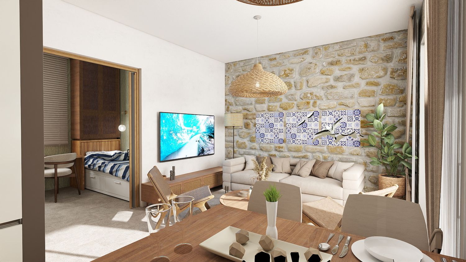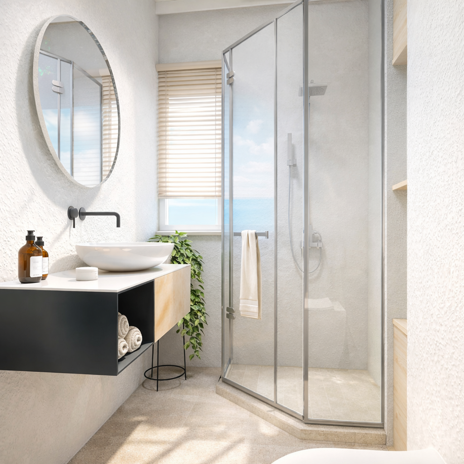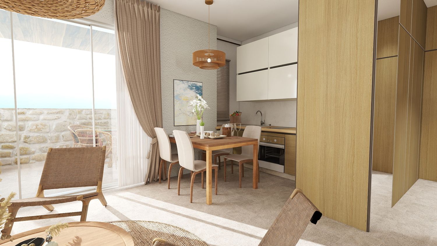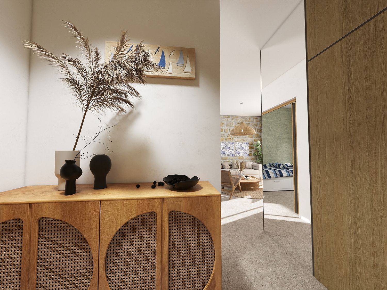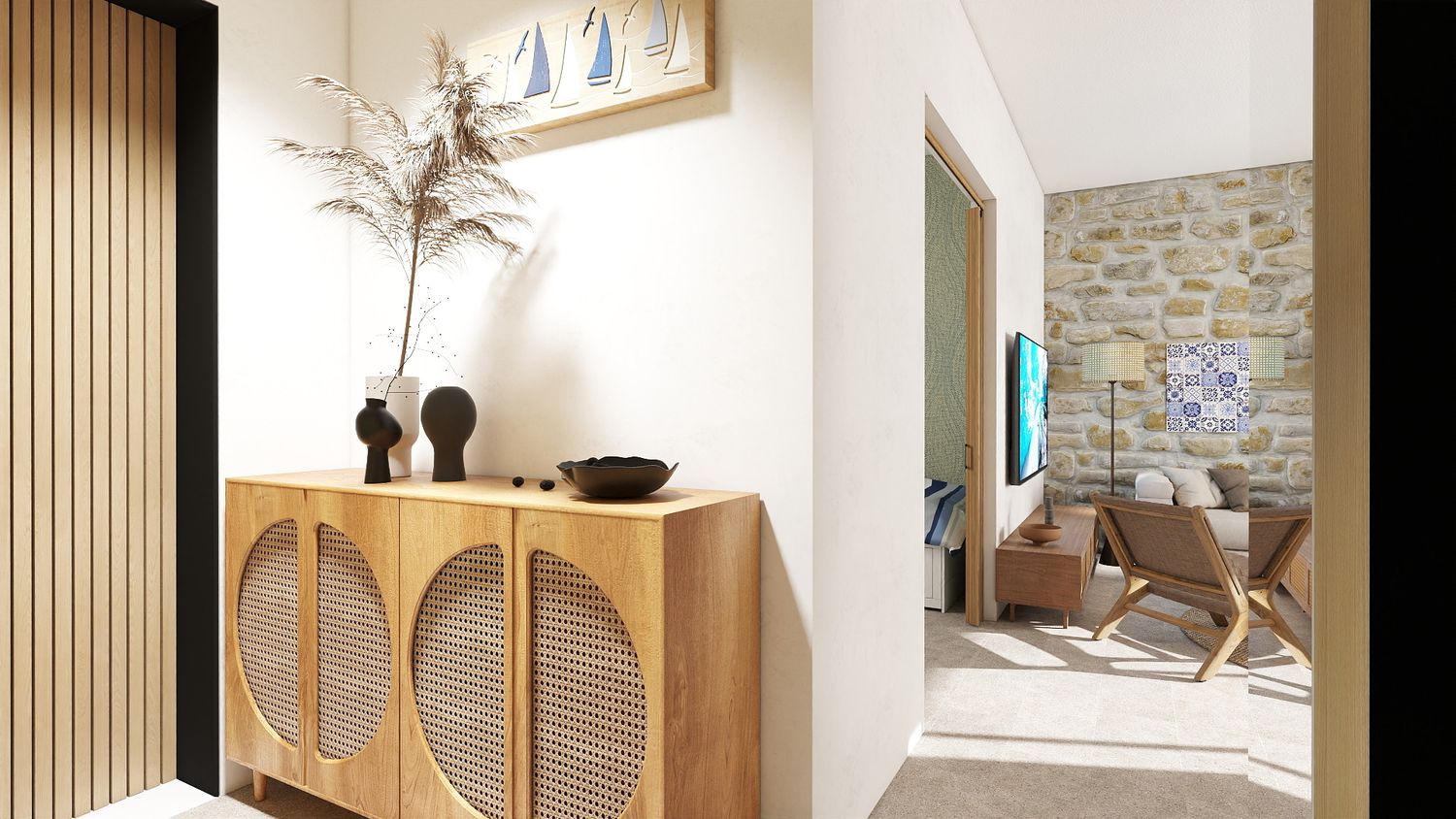 Il progetto interpreta lo stile mediterraneo in chiave contemporanea, con materiali naturali, colori chiari e una palette ispirata all’Adriatico, dove gli accenti blu sono discreti e facilmente modificabili nel tempo. Gli elementi tecnici e le predisposizioni future sono integrati in modo invisibile, mantenendo oggi una completa autonomia dell’appartamento.