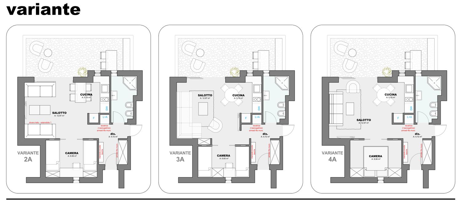 *soluzioni con divani letto / elementi trasformabili nella zona giorno, per incrementare la capacitĂ ricettiva.