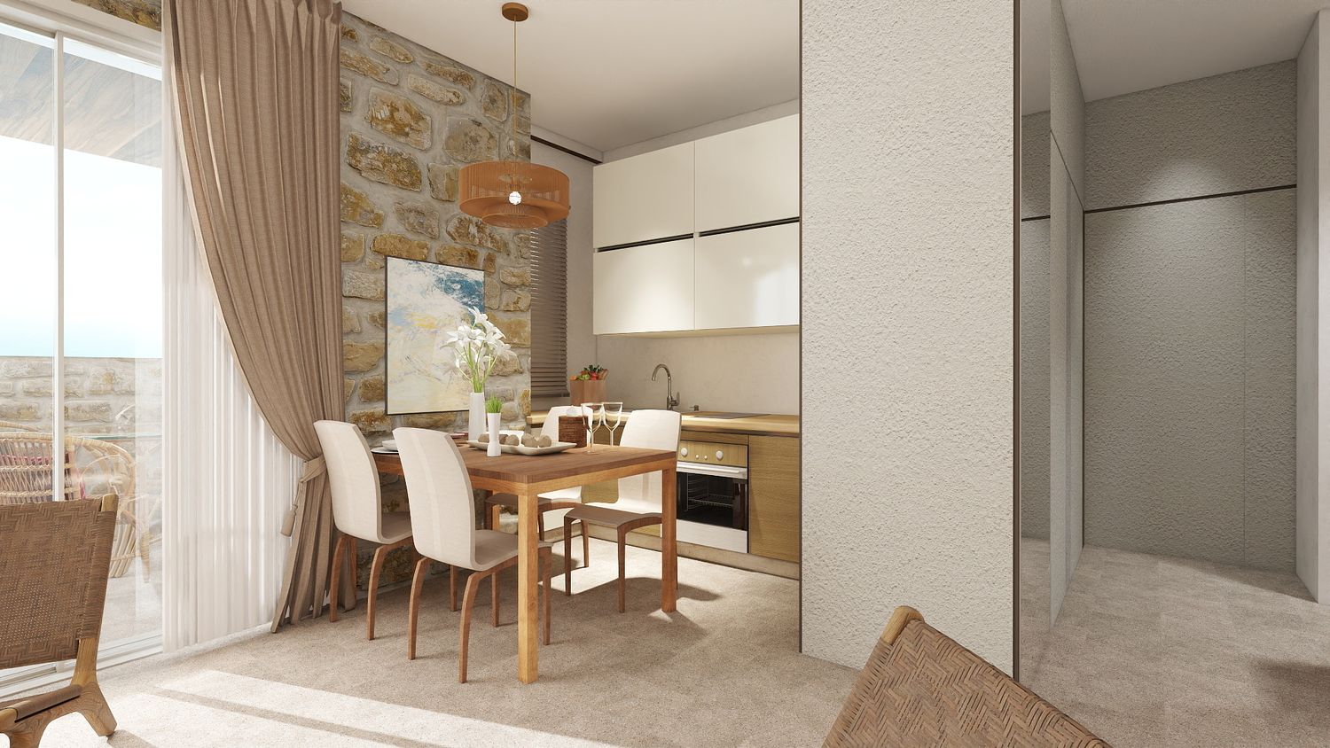 La connessione con l’appartamento adiacente, potrà essere definita in modo puntuale in funzione delle esigenze funzionali e delle normative locali, e potrà avvenire: