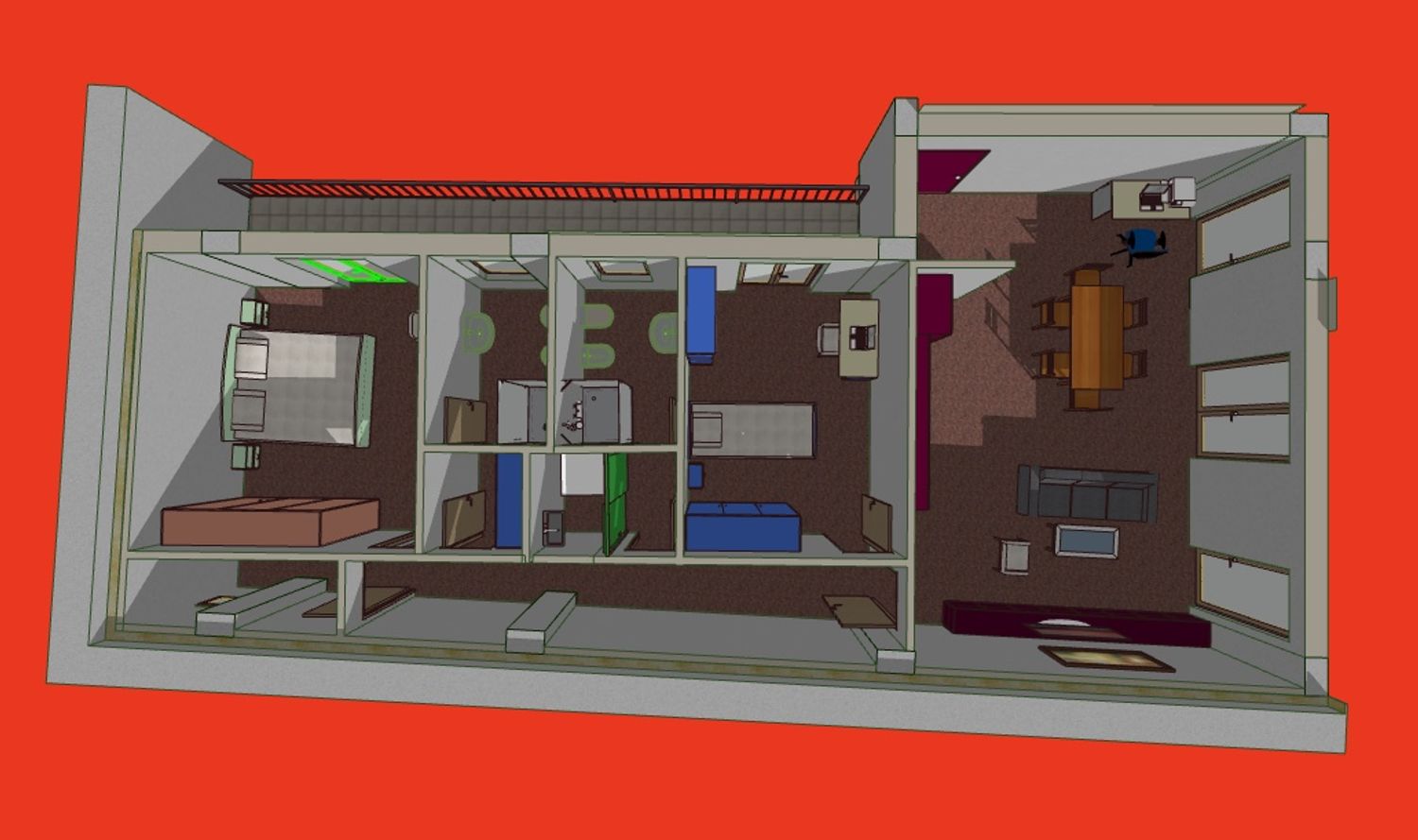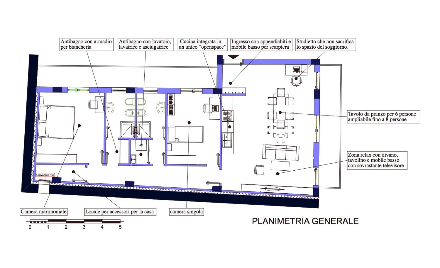 Si fa notare tuttavia che tutto l'arredamento è designato in modo volutamente approssimativo, solo per fornire indicazioni sulle possibilità , in quanto si ritiene che la scelta definitiva di esso sia prerogativa specifica del proprietario, anche da un punto di vista economico. Ciò vale anche per le camere.