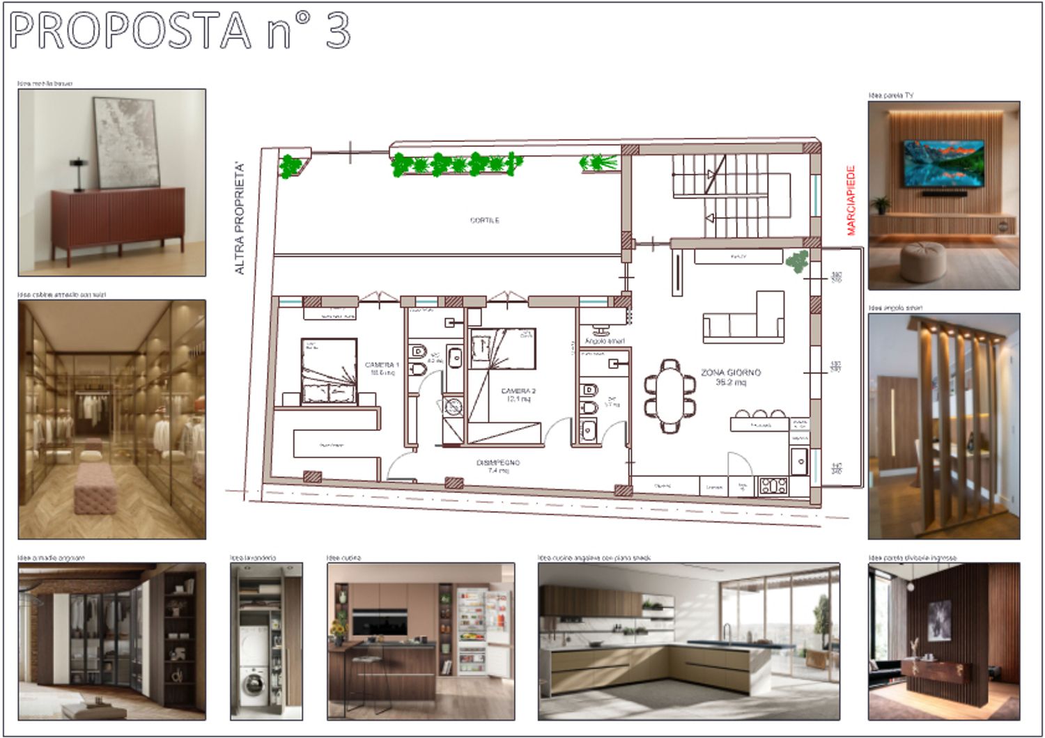 di seguito le mie tre proposte progettuali, studiate per offrirle soluzioni funzionali, moderne e adattabili alle sue esigenze.