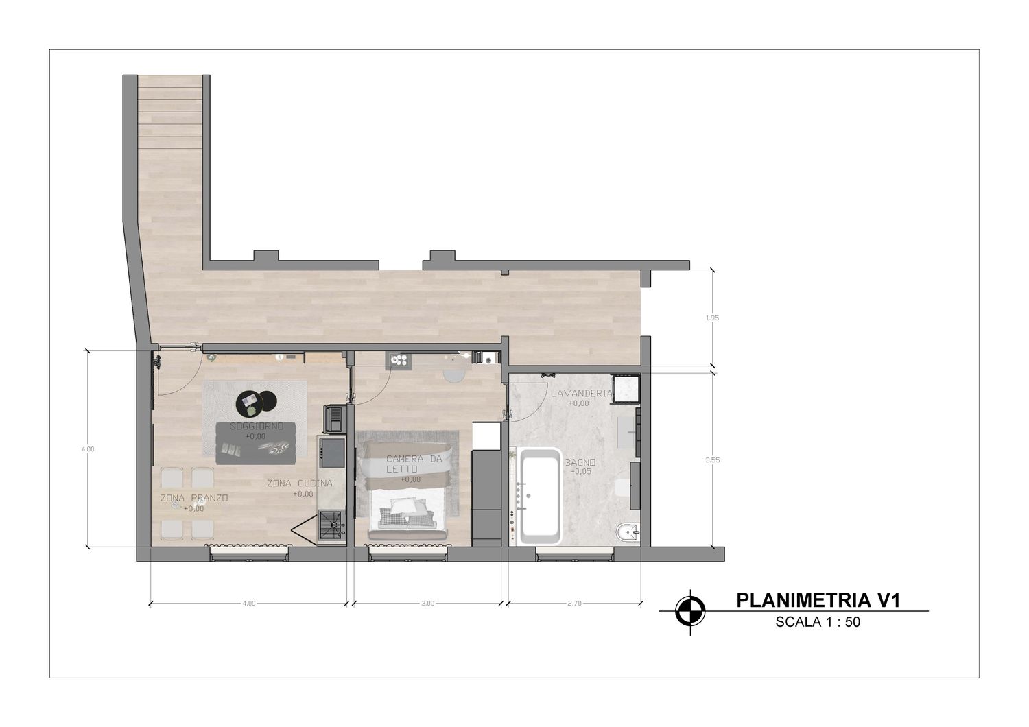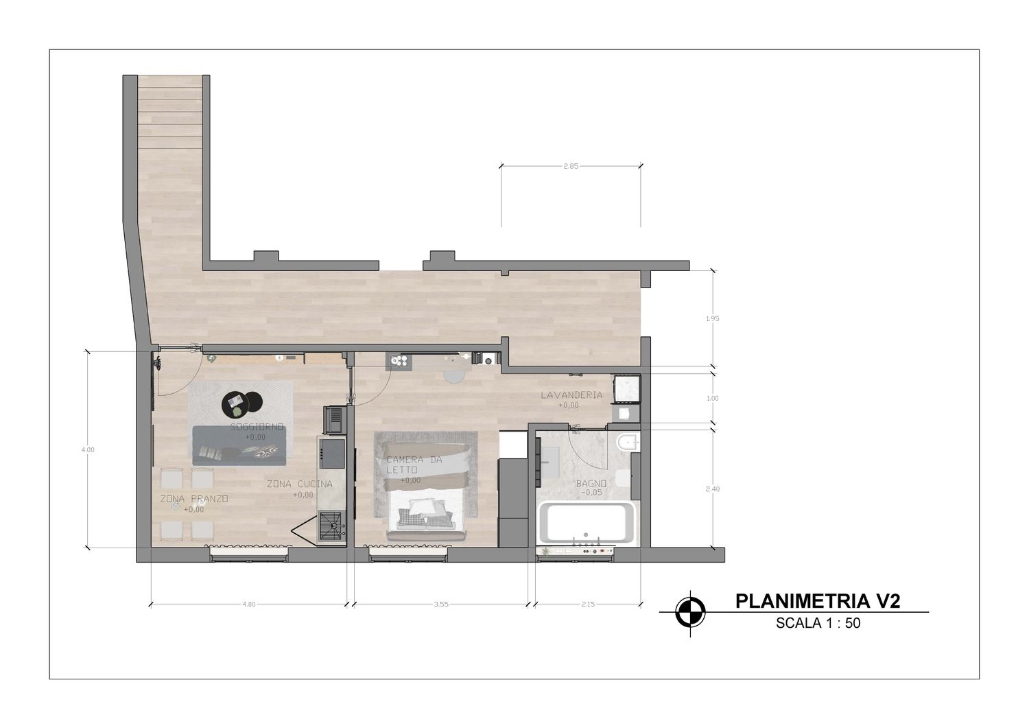 V2 → riorganizzazione più completa, con spazi ottimizzati e maggiore comfort abitativo.