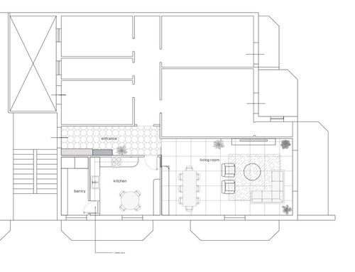 N.B. The area concerned is the one that is outlined in the plan photo, i.e. the living area. It can be noted that at the moment the partitions from the plan are not present.