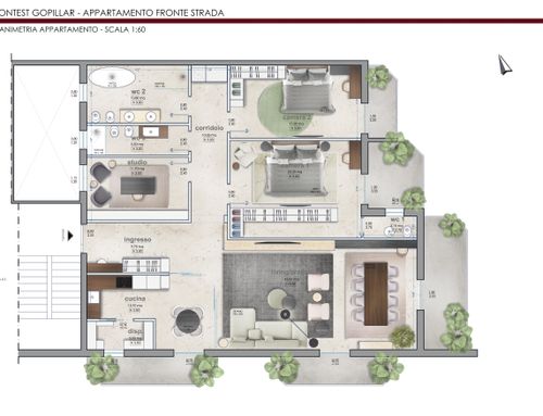 Dalla zona notte di attinge da un ingresso ad arco, che potrebbe essere eliminato dando luce ad una trave portante. ( trave visibile a coltello )