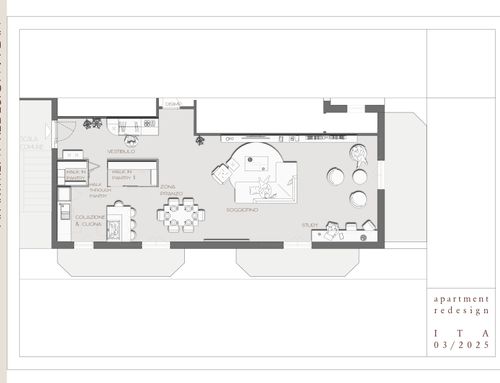Visto le dimensioni, non so se  sarebbe opportuno suddividere zona cucina con salone e magari destinare uno spazio dispensa per cucina, oppure creare un altro ambiente.