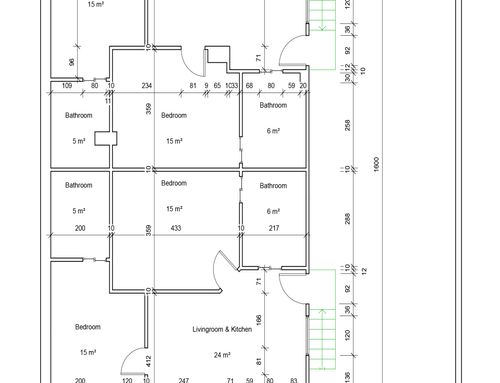 - each bedroom must have an attached bathroom (possible minimum dimensions of about 3.7 square meters)