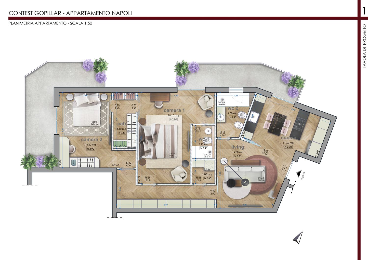 per il Suo progetto ho cercato di rispettare le Sue richieste sia per quanto riguarda lo stile, sia per la nuova distribuzione degli spazi.