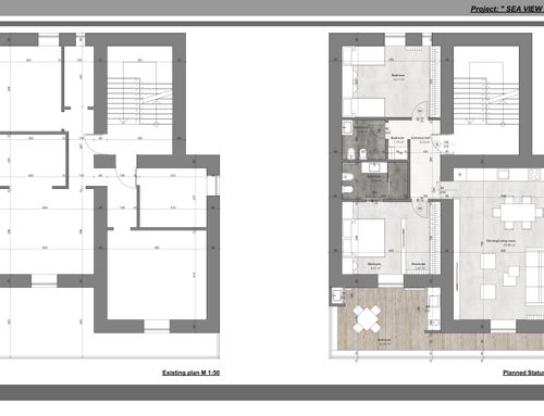 My future wife and I would like to renovate our new apartment of about 80 square meters in order to redistribute the spaces and get a house with a modern and functional style. We appreciate clean lines and we love optimizing spaces.