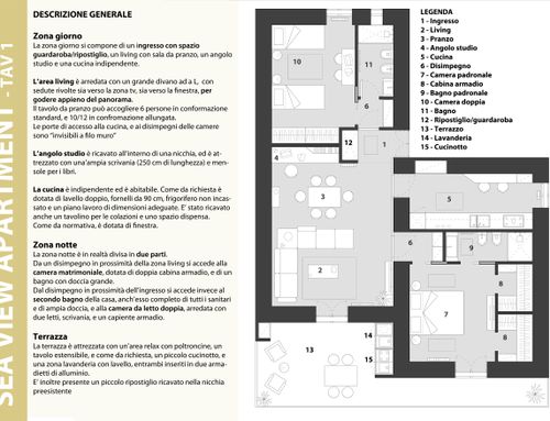 - Un bagno di servizio (con doccia, lavabo, wc e bidet);