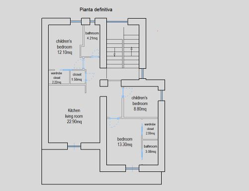 - Chiudere il secondo ingresso che si apre sulla zona notte (in pianta misura 1.20 m);