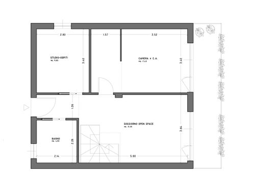Part of the kitchen will be a small room / study; in the current closet (possibly eliminating it as a closed space) we would like to put a fixed internal staircase to access the terrace above.