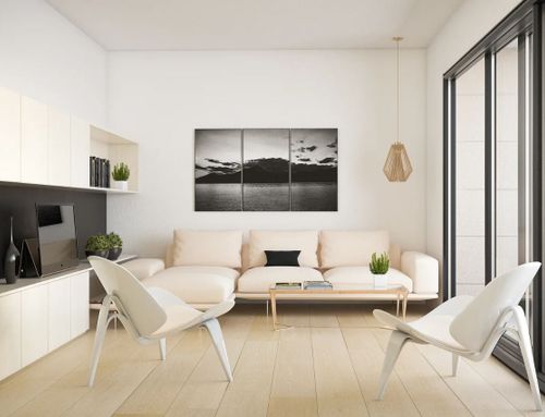 - Una cucina aperta sul soggiorno con un'isola che faccia anche da tavolo per la colazione per 2/3 persone.