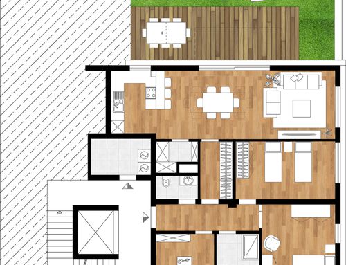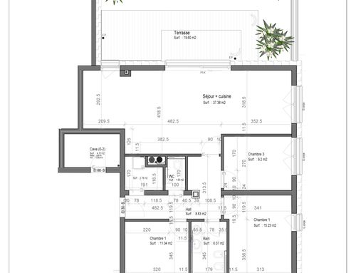 We love a warm and cozy environement with a modern style and sober colours. This project must optimize the usage of the spaces for a family of 3/4 people.