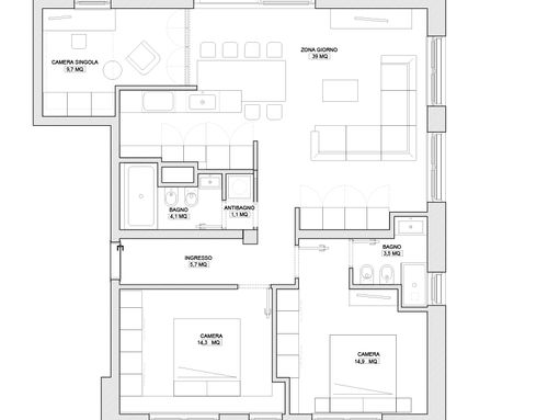 - the living room should have an free space where to put an opening consolle table as needed for 8/10 people and as well the space for 2 sofas with 2 and 3 seats. Alternatively it could be a 3-seater sofa and 2 armchairs.