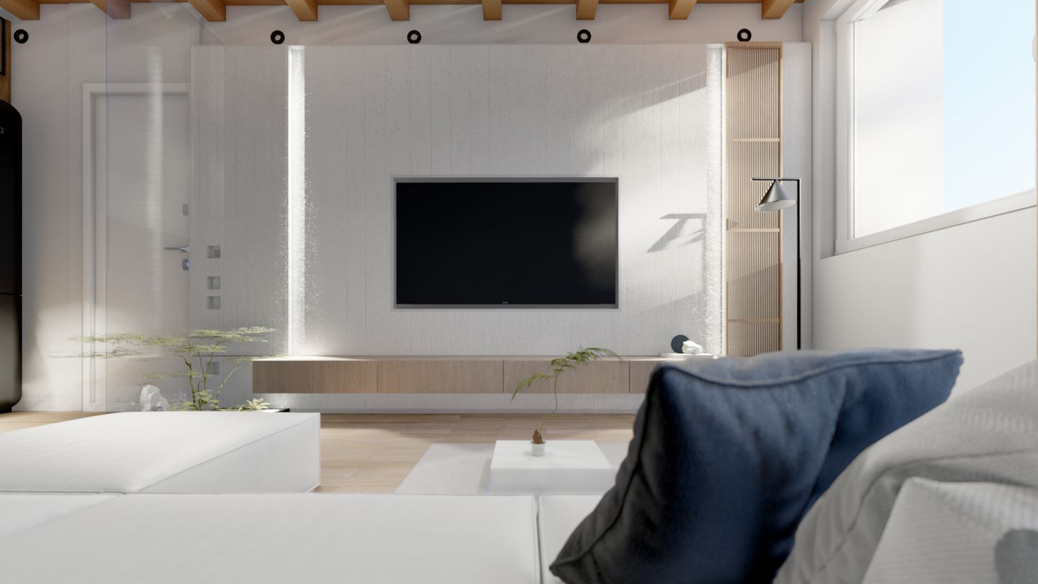 Gli arredi, dalle forme pure e dalle linee morbide, sono stati scelti con cura per far scorrere nello spazio una sensazione di leggerezza e quiete — un ambiente in cui la serenità non si osserva soltanto, ma si vive.