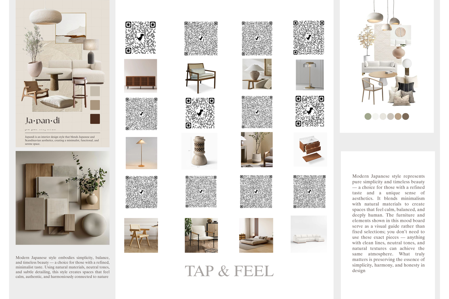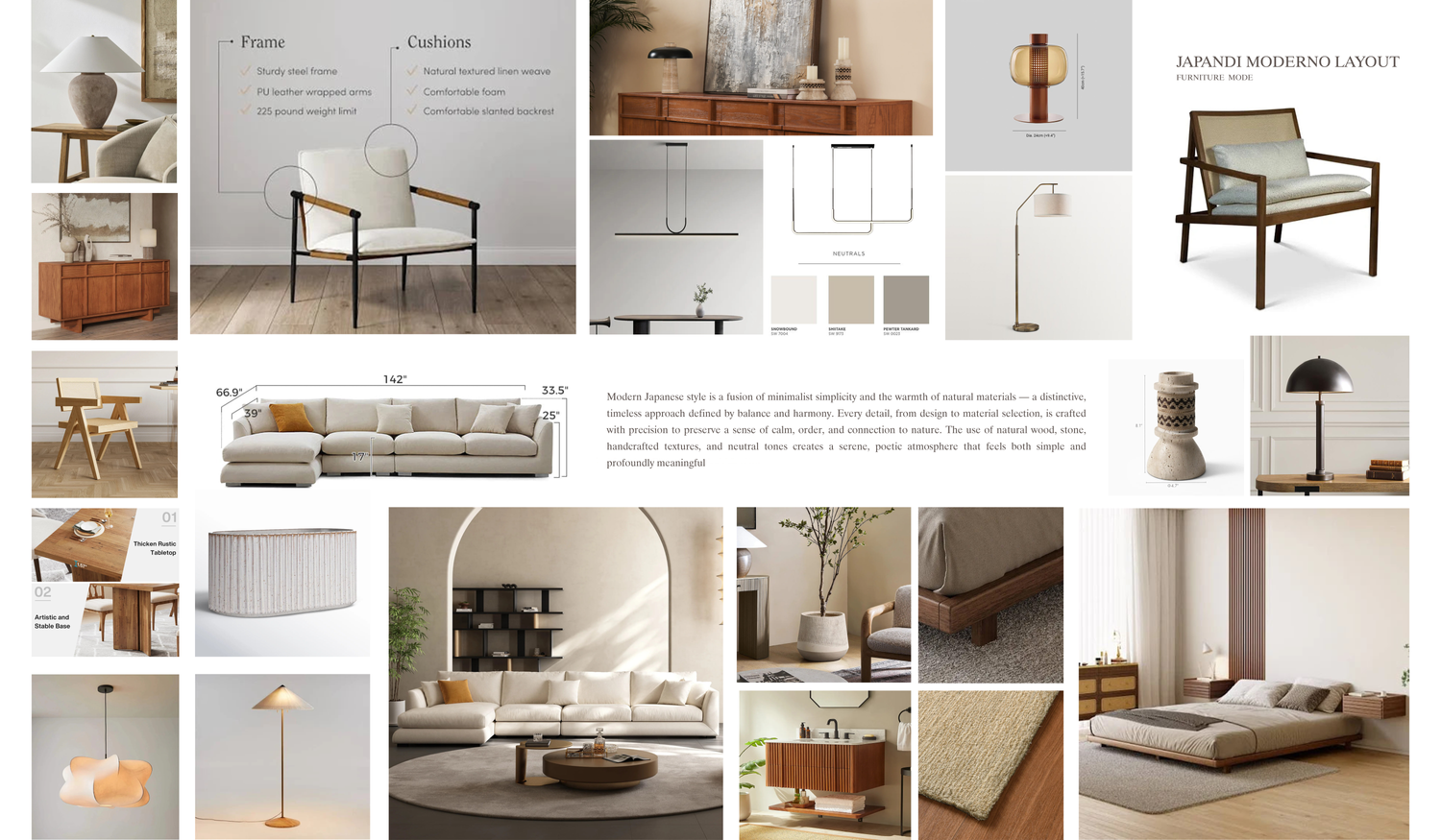 Gli elementi presentati in questo moodboard sono una guida ispiratrice — qualsiasi pezzo dalle forme semplici e dai materiali naturali può ricreare la stessa armonia e calma.