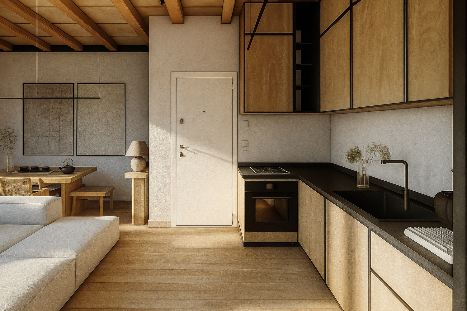Qui la semplicità non rappresenta una mancanza, ma riflette precisione, ordine e rispetto per i dettagli artigianali. La combinazione di luce naturale, tonalità neutre e materiali autentici come il legno e la pietra genera un’armonia poetica tra natura e architettura.