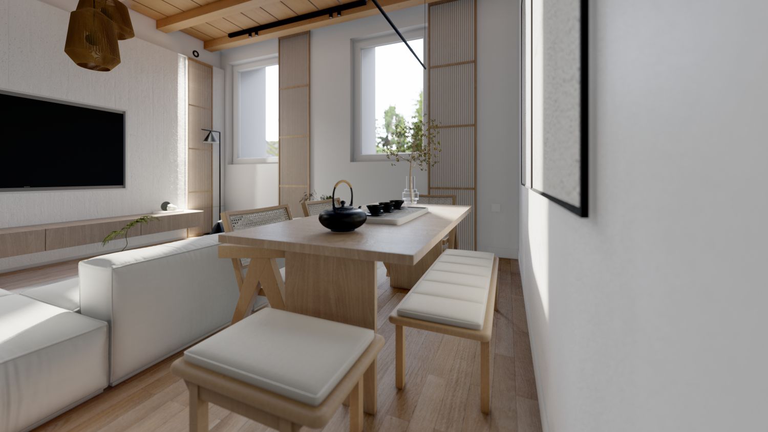 Questo progetto, ispirato allo stile giapponese moderno, è un intento consapevole di creare uno spazio calmo, senza tempo ed equilibrato.