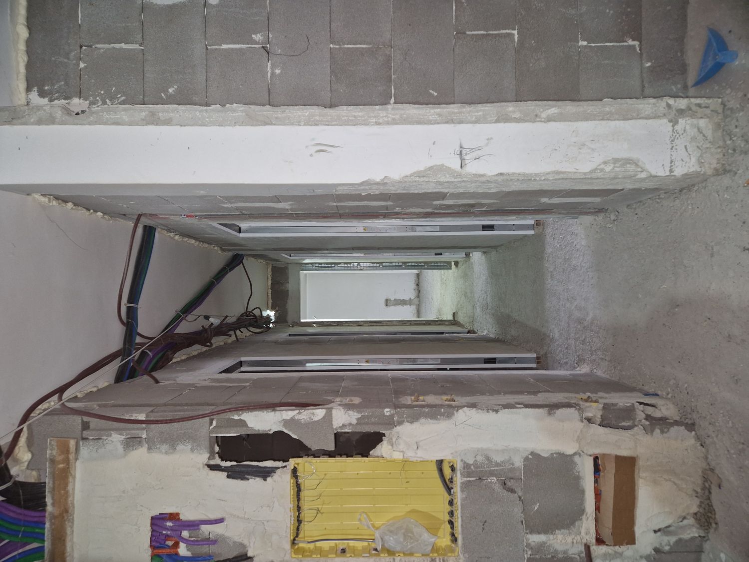We have installed underfloor heating and electric towel warmers near the bidet areas. The flush-to-wall sliding doors will be 240 cm high, and the ducted air-conditioning system in the living area runs along the right-hand wall (living room–bathroom–kitchen). In the night zone, the duct system is placed in the corridor, with an approximate depth of 40 cm.