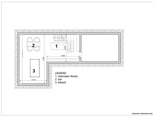 n the basement you have freedom of choice, the only thing that can’t be moved from the actual position is the pool table. At the moment, this room has white and bare walls. Here we’ve temporarily placed the garden furniture as you can see in the photos, but we will remove those.