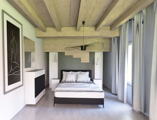 In the master bedroom we’d like to keep only the closet room. You have freedom of choice for anything else. For the moment we just placed a bed and a TV.