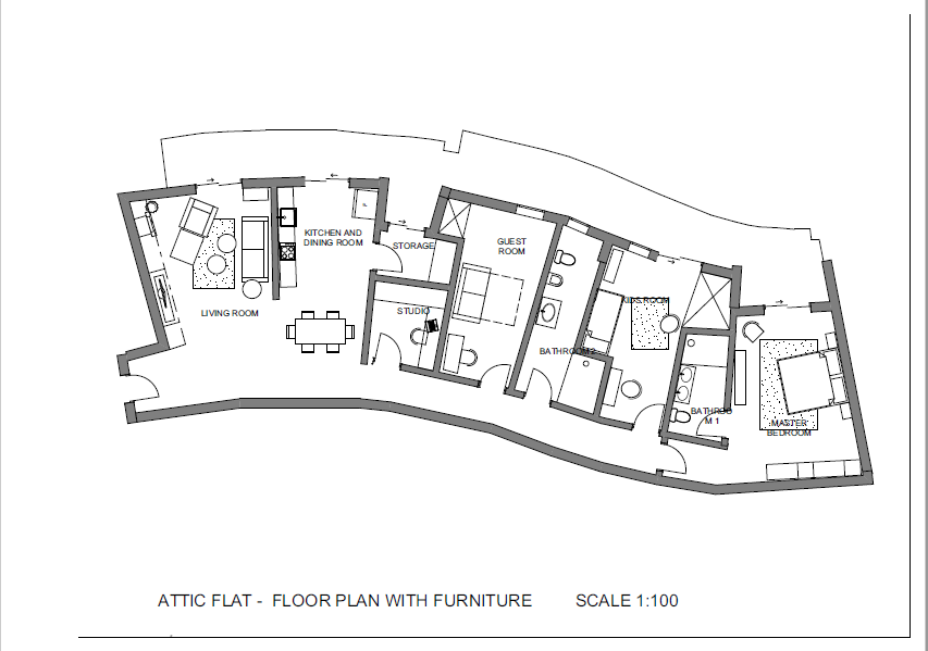 Vorrei realizzare 3 camere da letto e due bagni. Possibilmente un bagno in camera da letto principale.