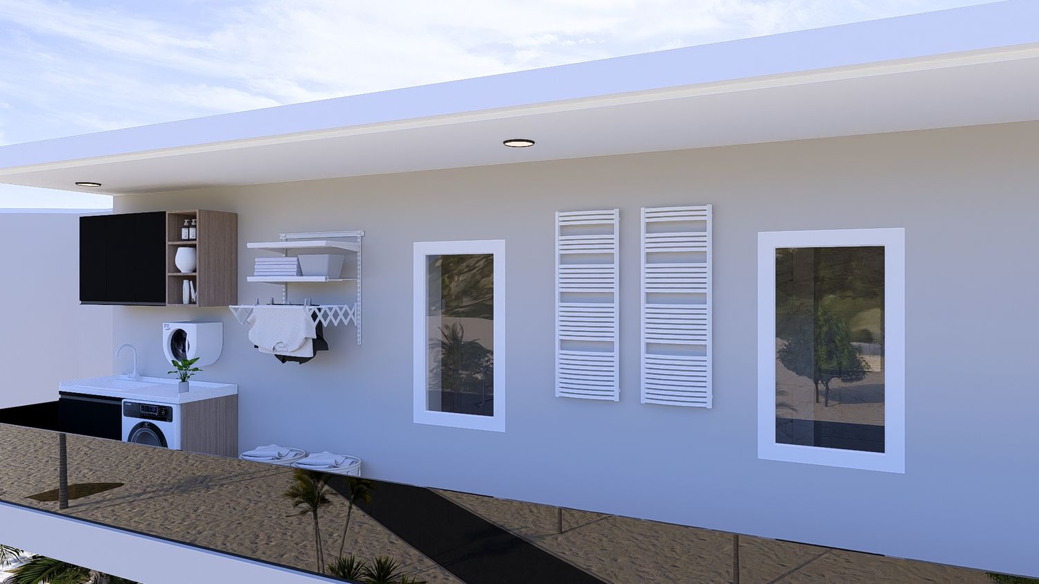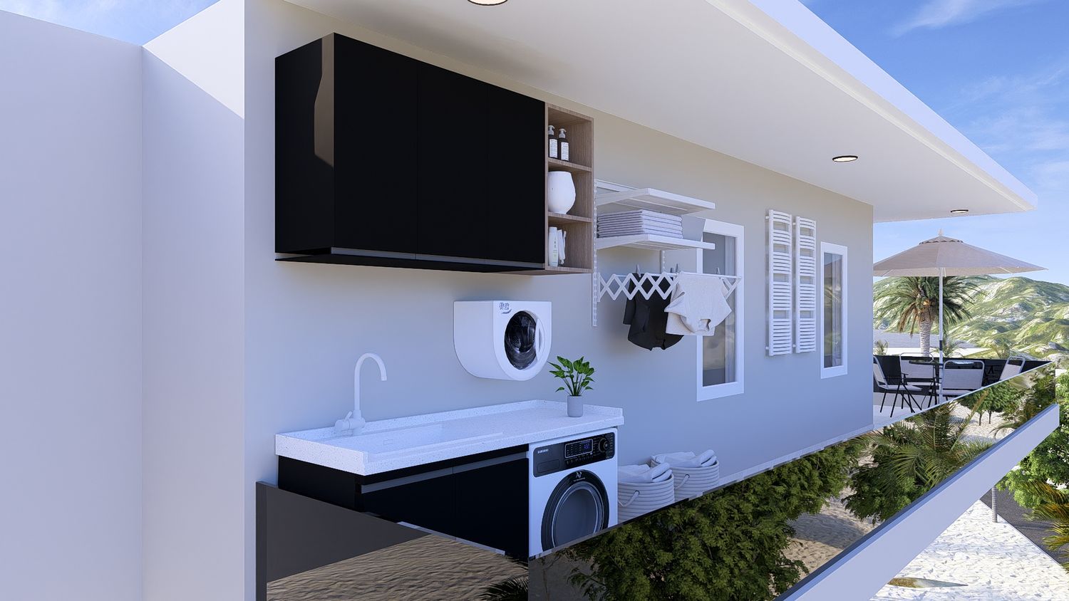 Zona lavanderia: posizionata secondo i desideri del cliente in una zona nascosta con varie funzioni e zona asciugatura.