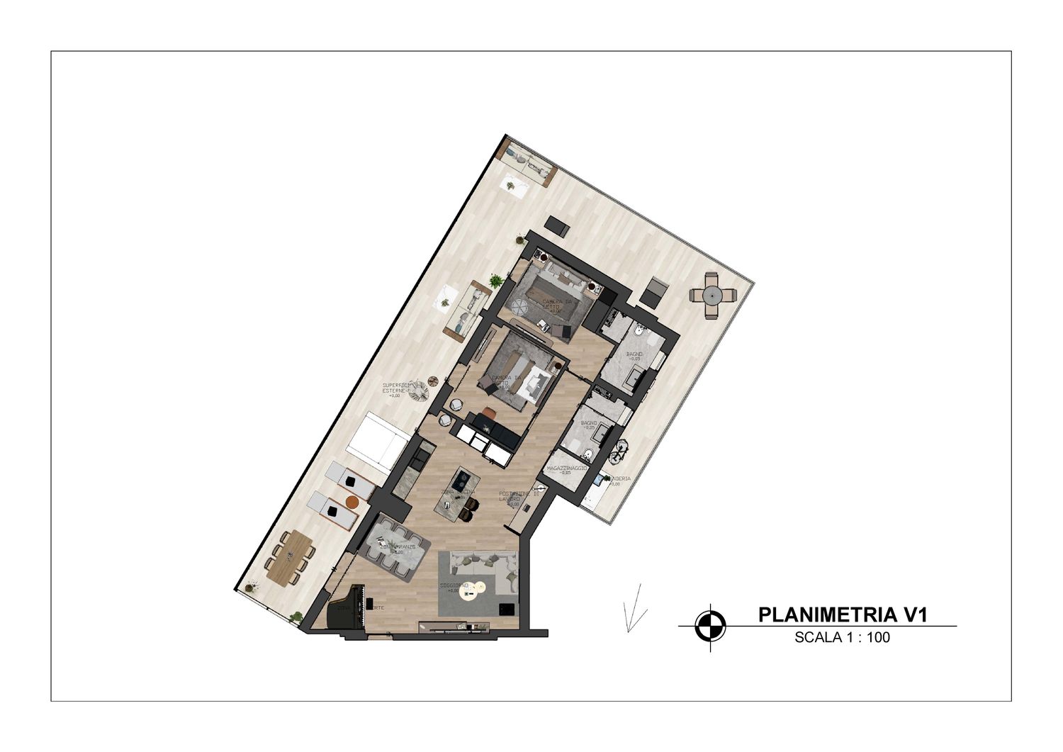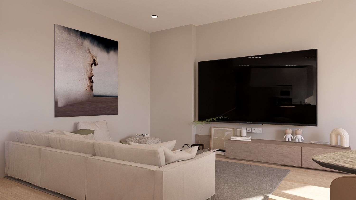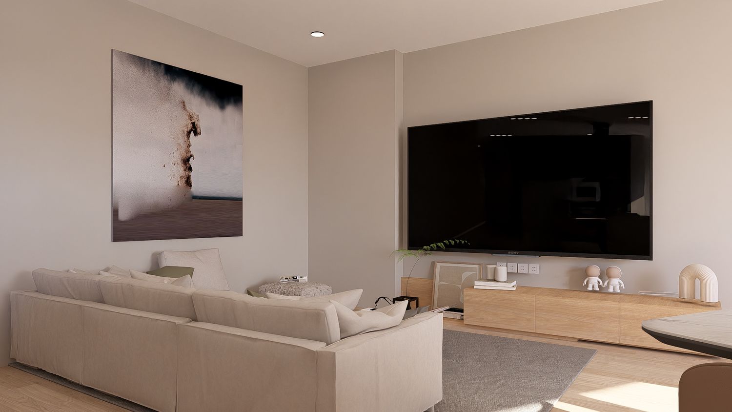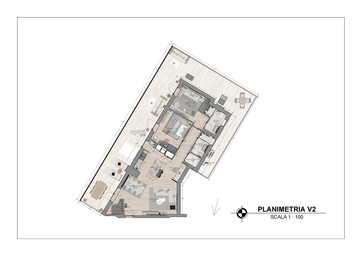 Armonia interno–esterno: continuità visiva tra soggiorno e terrazza grazie a materiali e colori coerenti.