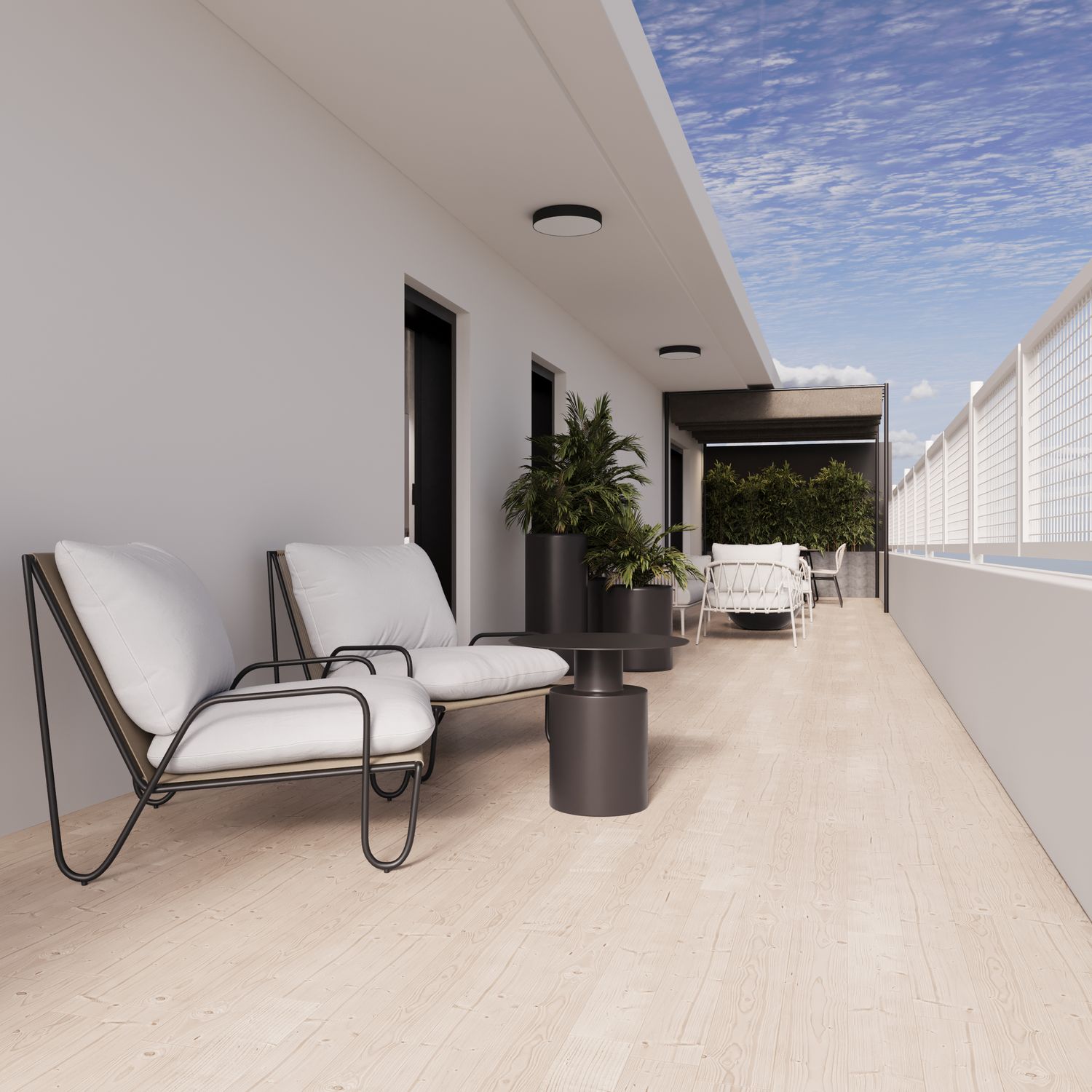 -And finally, the fourth section, located at the upper end of the terrace, includes a four-person table, perfect for smaller gatherings or casual activities like board games in a more private setting.