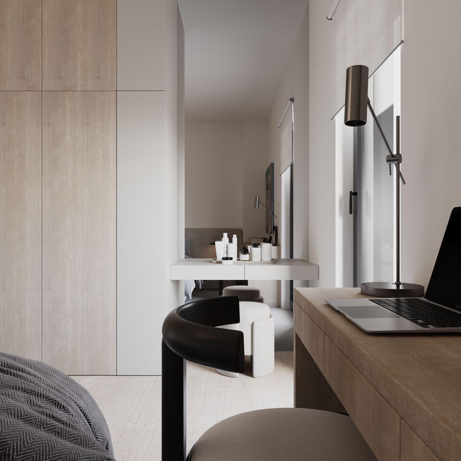 - The first option is on the left side of the entrance, as a wall-mounted, portable desk. However, I wouldn’t recommend this option since it’s close to the entrance and may make the layout feel slightly crowded.