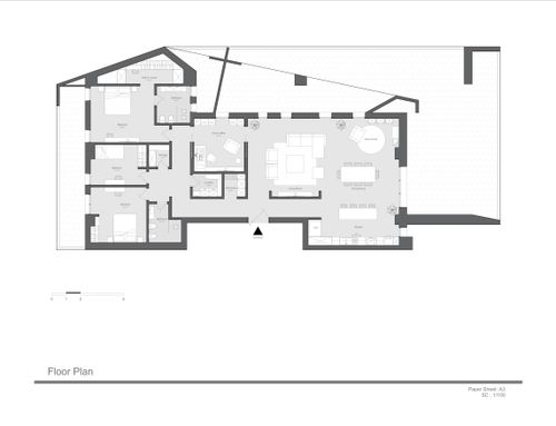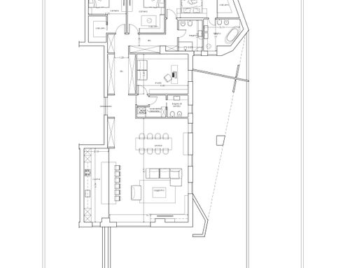 A large living room: a convivial and welcoming space, to be used for relaxation, entertainment and socializing. Particular attention is required to natural light and visual continuity with the kitchen.