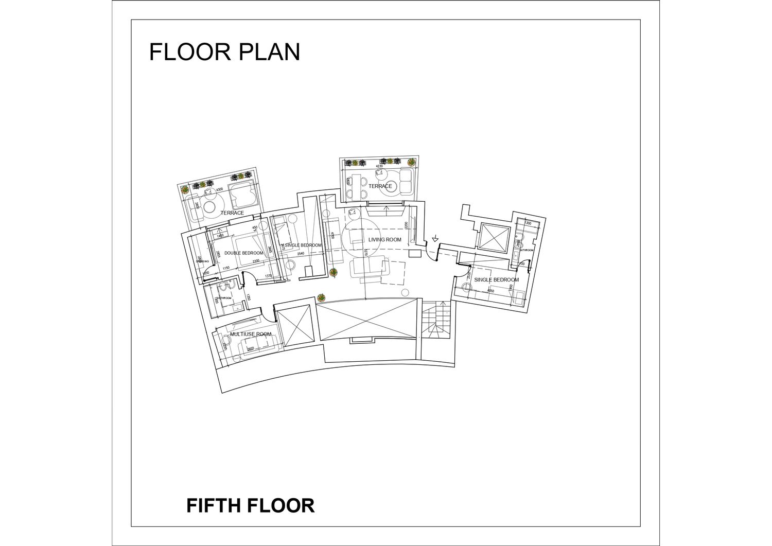 _Fourth Floor The layout includes a kitchen, dining area, two bathrooms, and a terrace.