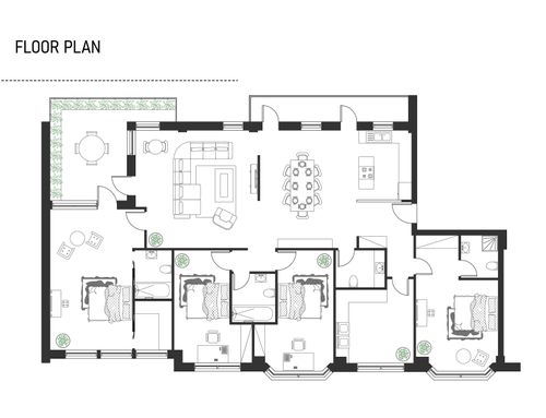Se necesita tener 1 dormitorio principal con baño, posiblemente walk-in closet, 2 dormitorios individuales, segundo baño y posiblemente cuarto con baño para ama de llaves. Al igual que el estilo moderno, la altura actual es de 280 cm a partir de la cual hay que hacer los suelos con calefacción radiante.