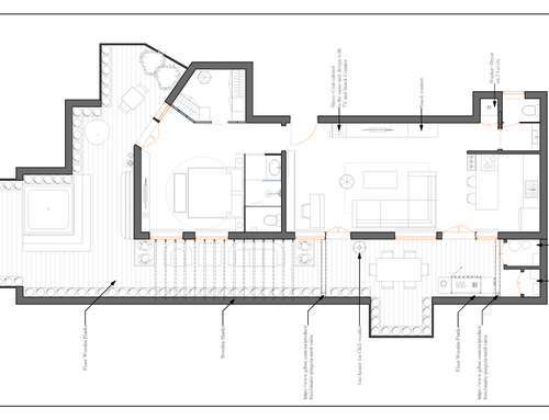 The environments must be proportionate to the total surface which is rather limited, but anyway fully usable, absolutely functional and aesthetically impressive. The design choices must therefore take this aspect into account and achieve cmq the best possible solution, even eventually renouncing to some requests (eg second bathroom), if deemed appropriate in order to obtain an optimal result.