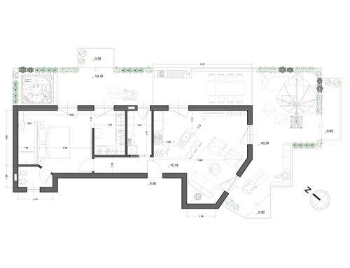One of the prerequisites is to equip the apartment with a floor heating system. Since the terraces are at a greater altitude than the surface of the apartment (+19.00 cm) and the height of the apartment is 300 cm, we want to evaluate the possibility of raising the height so as to easily realize both the system and floor, and any displacement of the drains, and at the same time, also solve the problem of the difference in height between apartment and terrace.