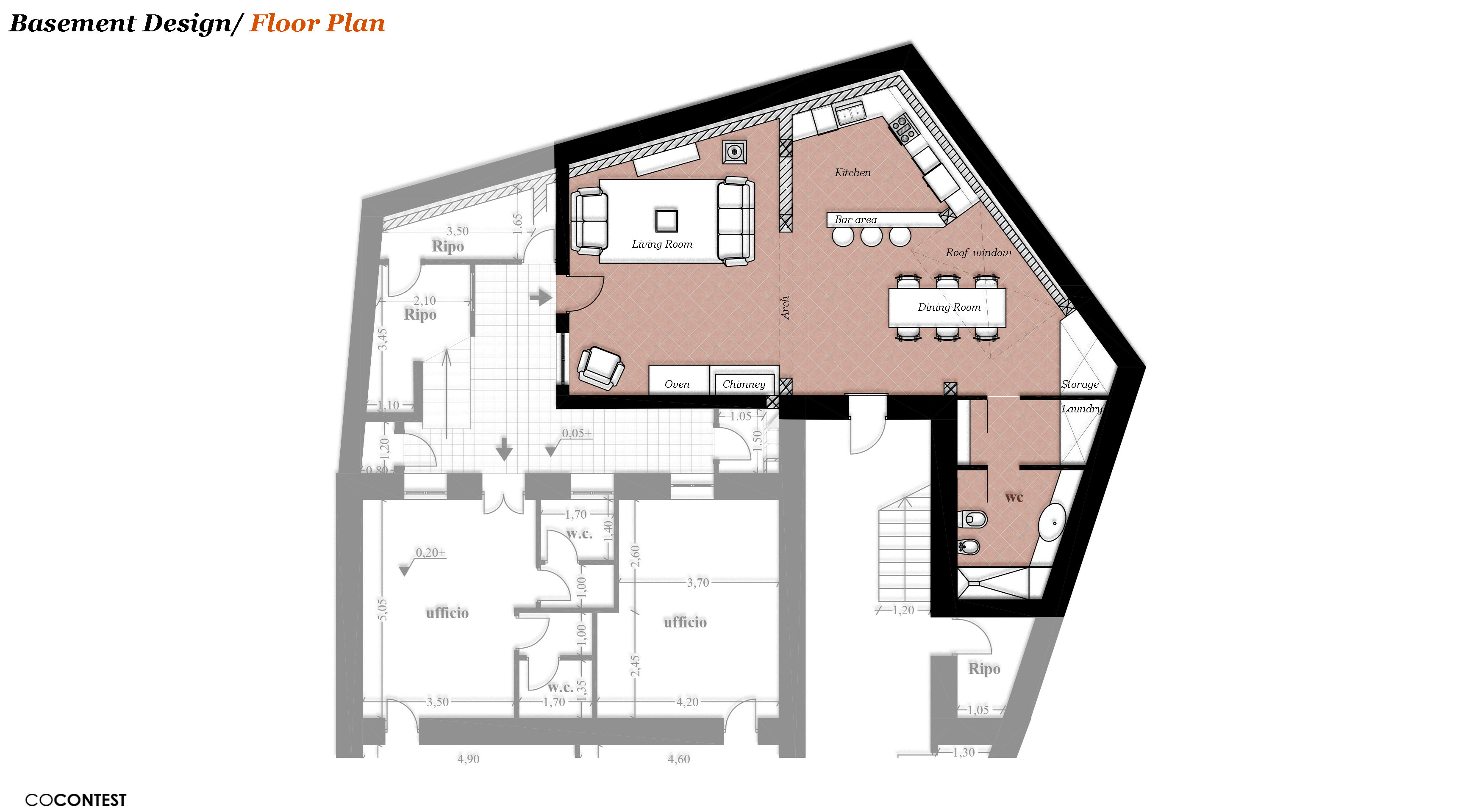 Salve a tutti, pre prima cosa vi ringrazio per il tempo che andrete a dedicatre al mio Contest e spero di essere il piu' chiaro possibile scrivendo le mie esigenze. In poche parole dietro al vecchio edificio ho costruito un piano a livello strada che mi permetesse di usarlo come parcheggio e al di sotto uno spazio da usare come cantina o meglio dire un'ambiente che vorrei utilizzare con la famiglia, amici e parenti per passare piacevoli serate insieme e festeggiare vari eventi. Lo stato attuale: e' ancora un rustico, e quindi ho ancora molta flessibilita' nel modificare la locazione dei vari servizi. L'altezza attuale e' di 2.80mt (credo almeno), ma non ci sono ancora I pavimenti. Del progetto originale in DWG non vorremmo fare il deposito attrezzi, ma dare questo spazio all'ambiente, ed avere un pozzo luce che illumini la zona sottostante, ed infatti al di sotto (sulla parete Nord-Est) pensavo di metterci la cucina. Nella cantina vorremmo avere un forno a legna ed un camino: due tubi del camino arrivano a meta del muro sud (nel disegno e' segnato solo uno ma invece sono due). Vorrei creare un bell'ambiente poco formale ma comodo e vivibile, ci piace il rustico (stile toscano) ma non amiamo gli eccessi. Nell'allegato JPG ho cercato di segnare lo stato attuale e non a progetto, infatti durante la costruzione sono state fatte alcune modifiche.Grazie di nuovo e cerchero' di essere celere nelle risposte alle vostre domande.