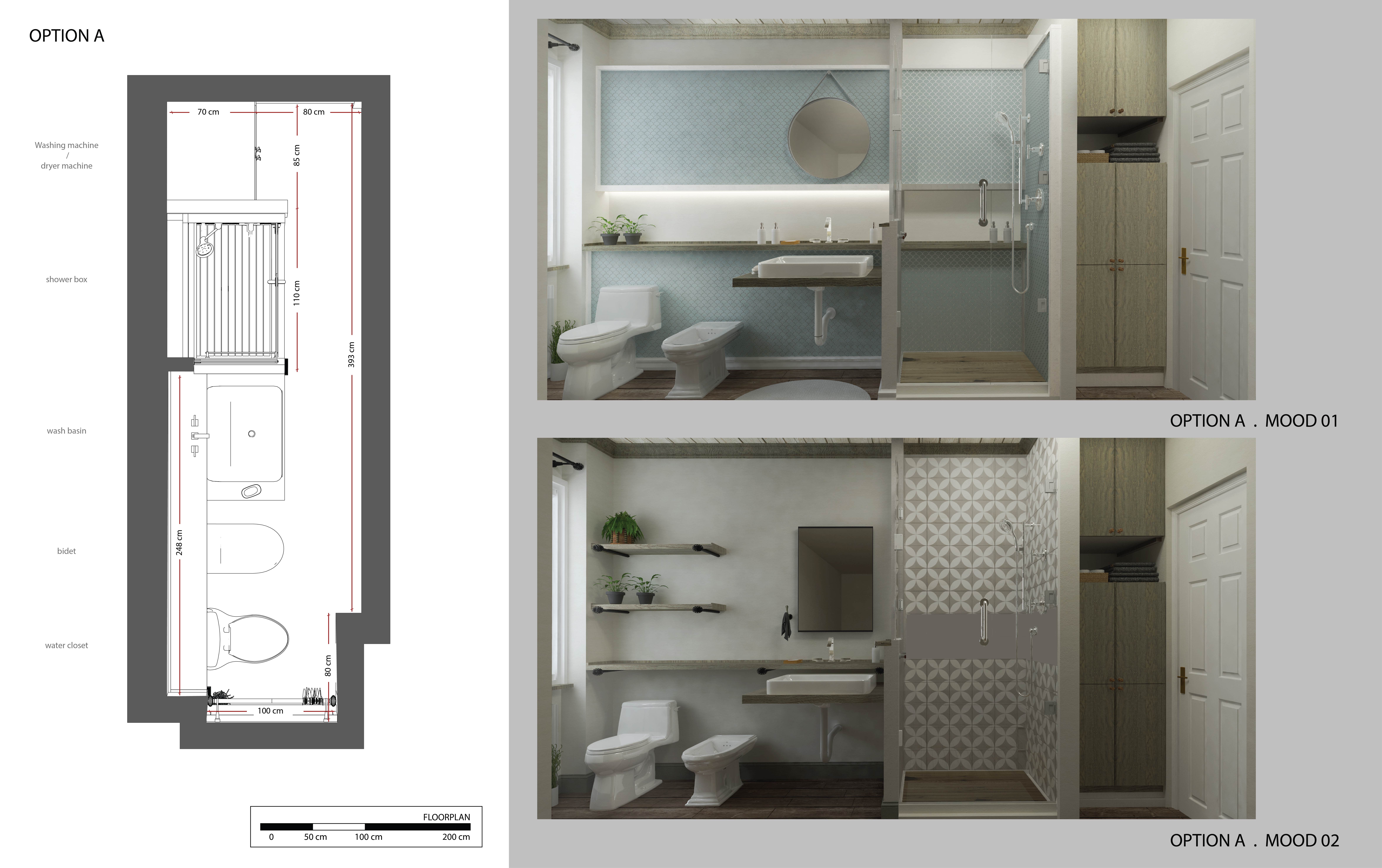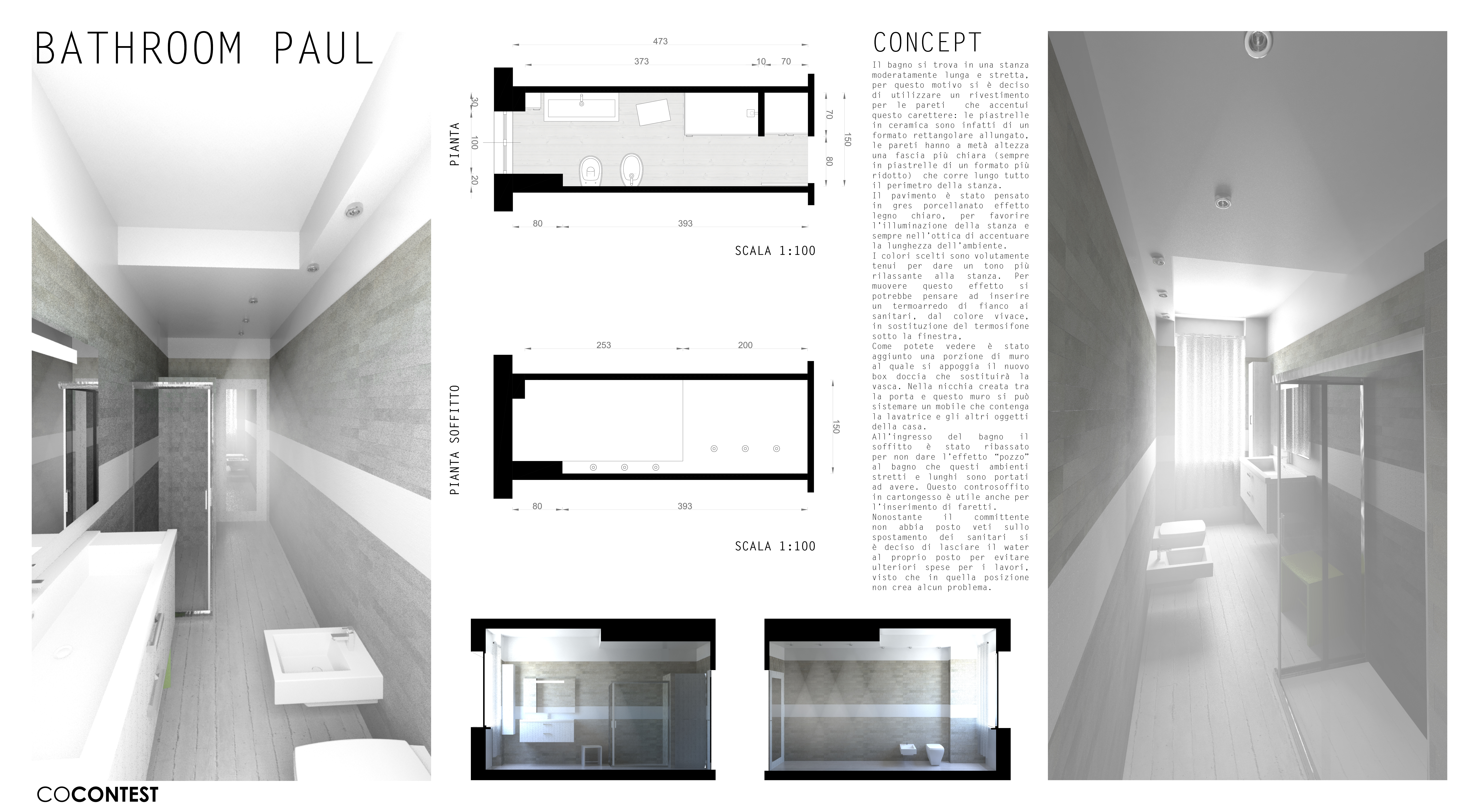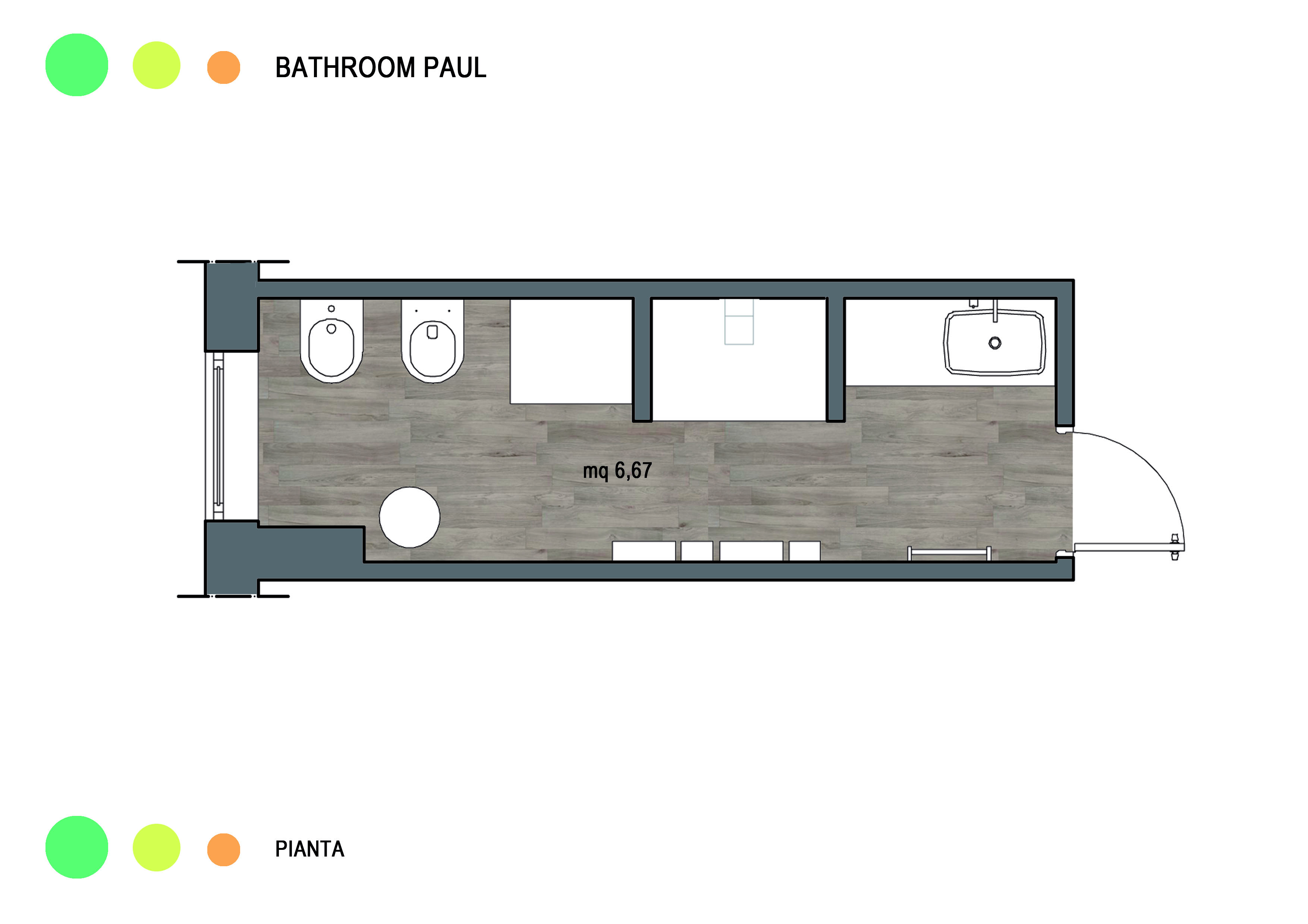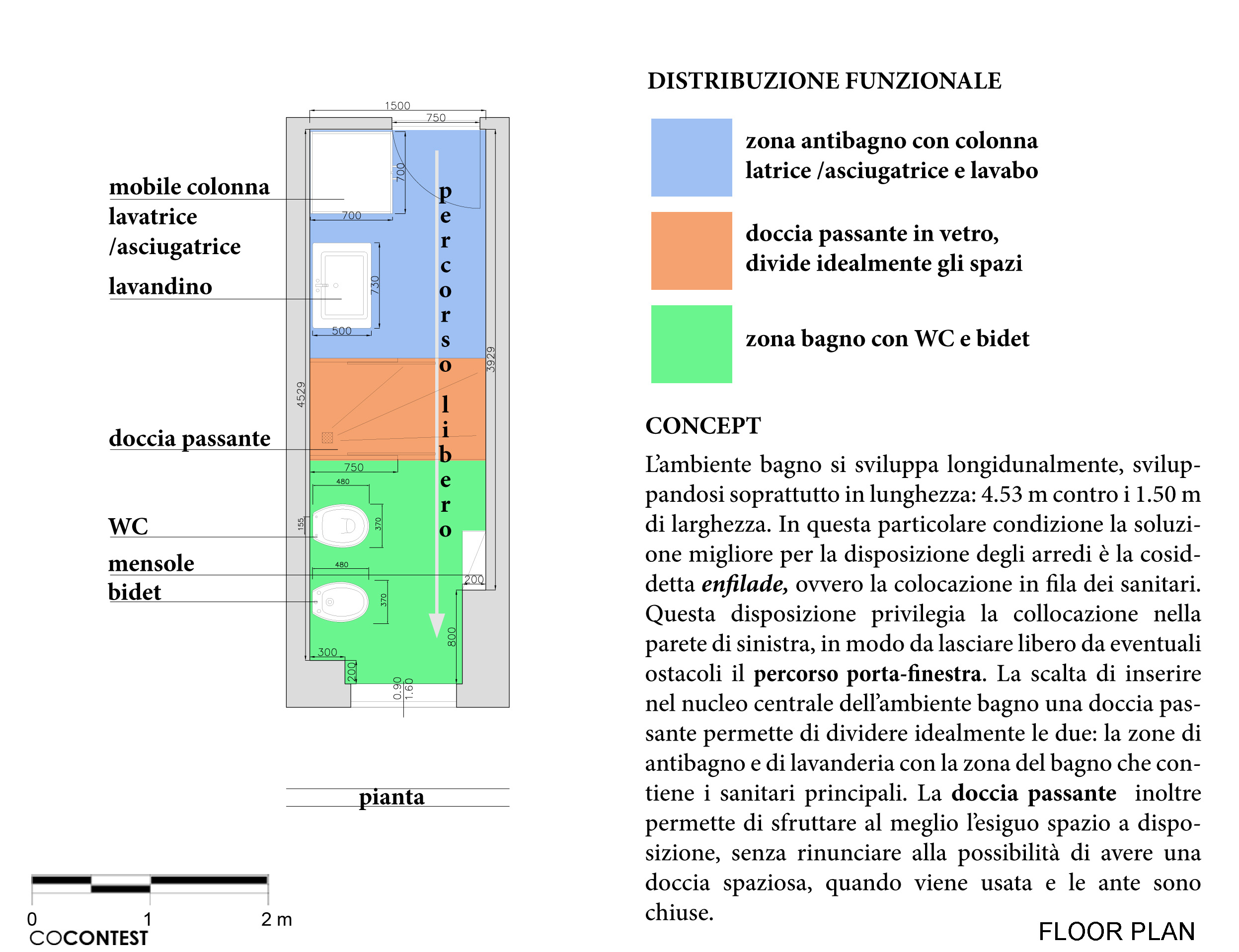 Il bagno dovrà avere i seguenti accessori: Bidet WC Doccia Lavabo Colonna lavatrice/asciugatrice Non dovrà avere la vasca