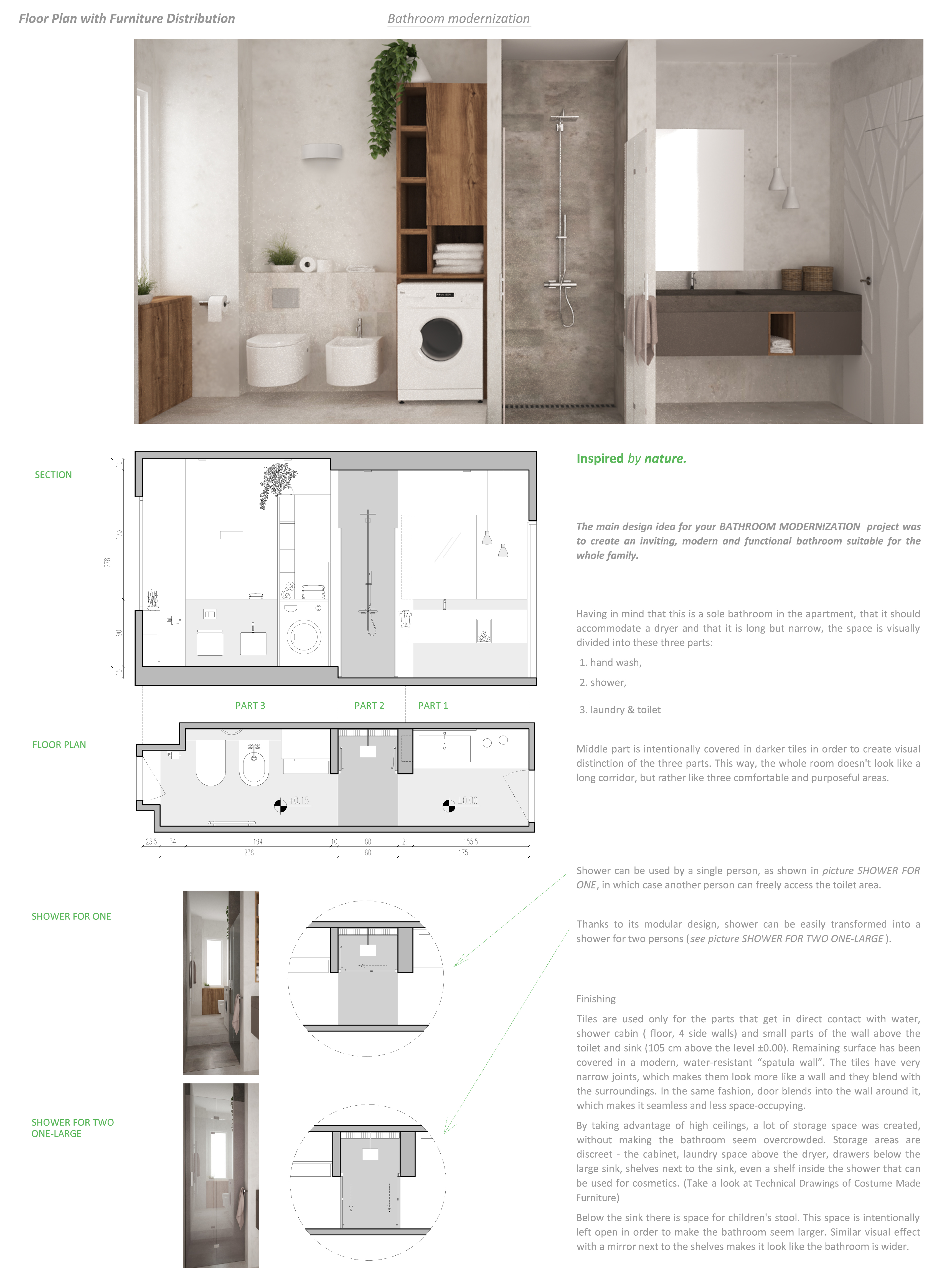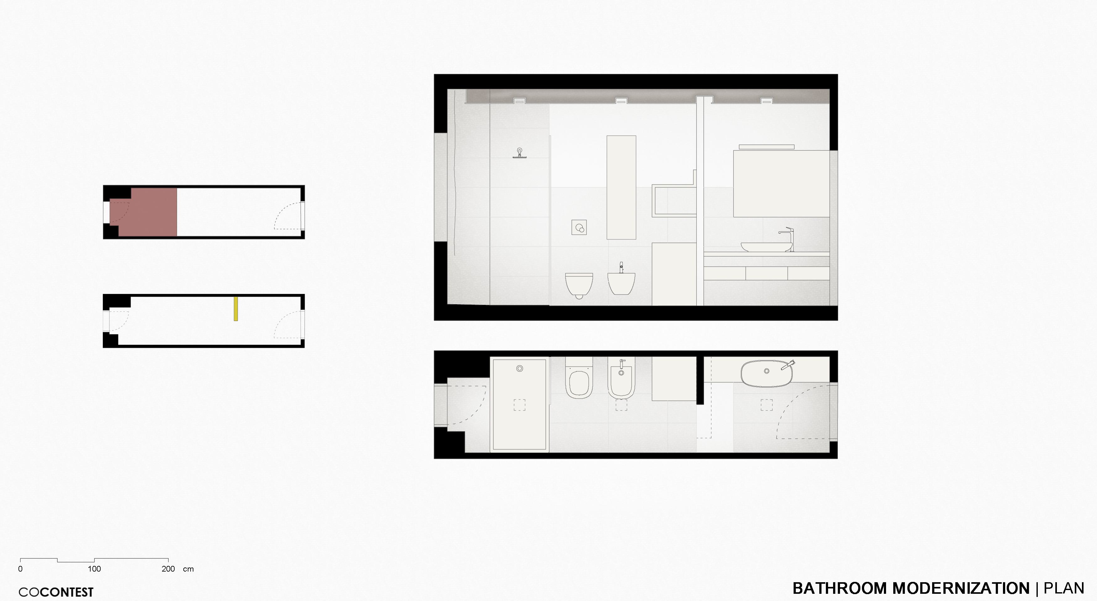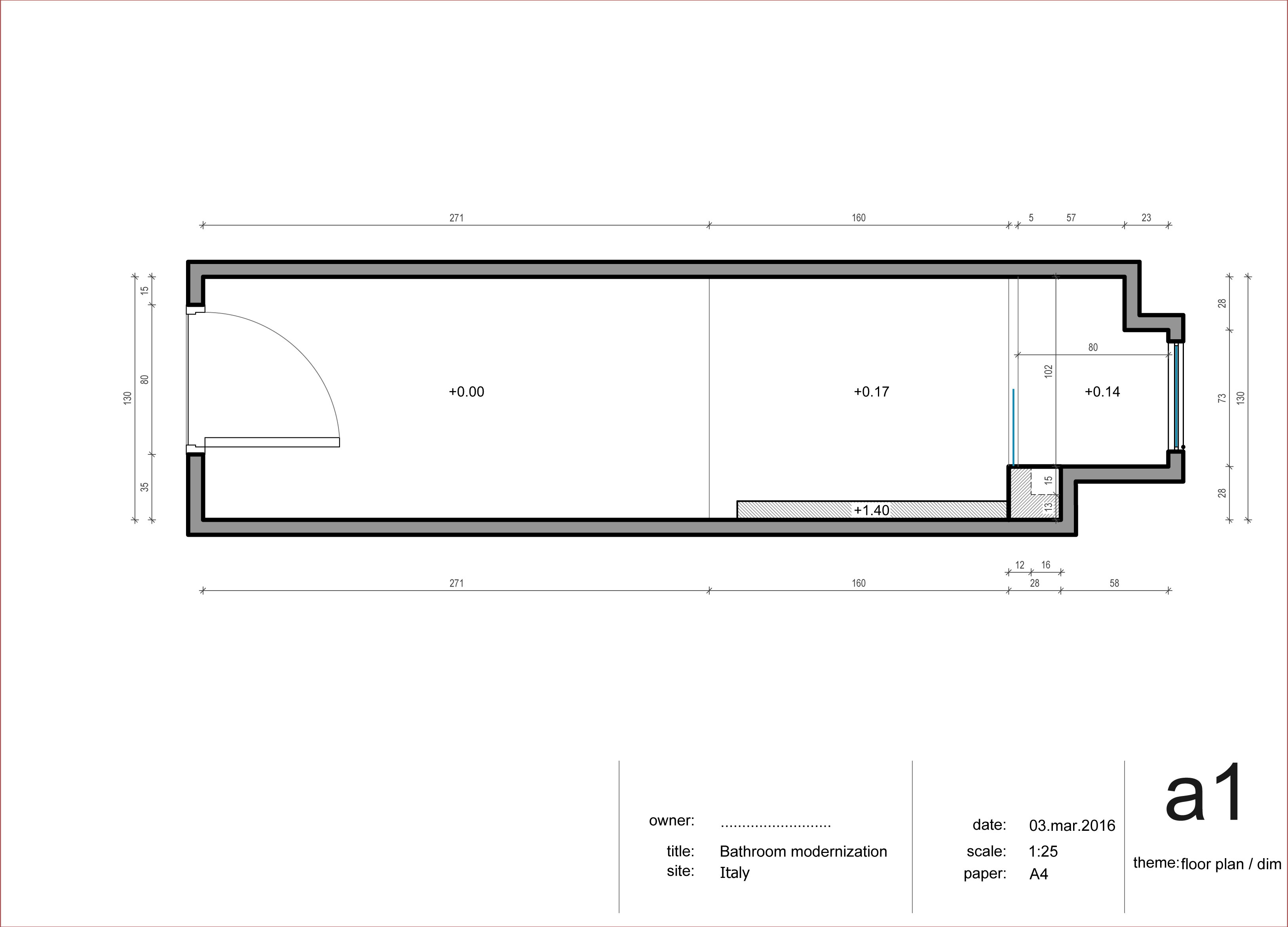 Il bagno è l'unico presente nell'appartamento vorremmo quindi coniugare la fruibilità dello stesso con l'estetica. L'idea è di rimpiazzare la vasca da bagno con una doccia, aggiungere un'asciugatrice. Il wc rimarrà nella posizione attuale poiché gli scarichi delle acque scure condominiali si trovano nella "scaffa" a destra della finestra.