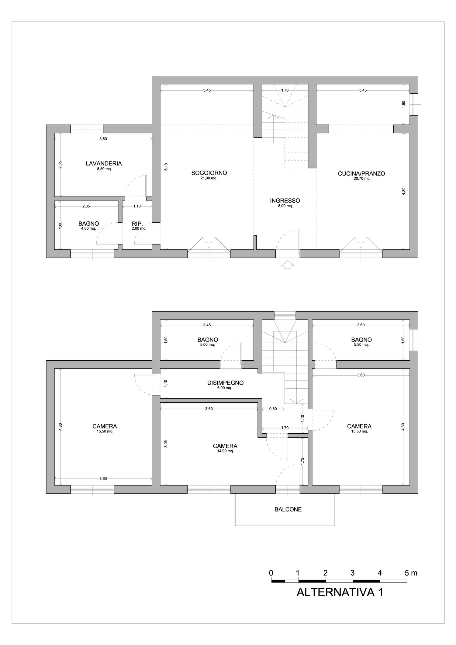 In entrambe le soluzioni, alcune aperture esterne verranno modificate per adattarsi alle nuove esigenze dell'immobile.